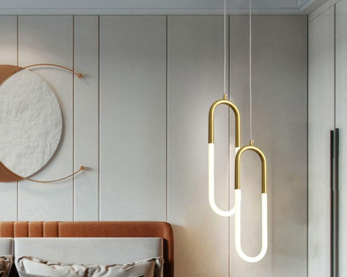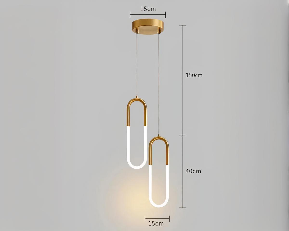Cette suspension moderne à deux lampes en cuivre doré incarne la sophistication. Sa structure épurée et sa couleur attrayante font de ce luminaire un ajout élégant à votre maison. Parfaite pour les environnements modernes ou minimalistes, elle projette une lumière qui enrichit chaque coin de la pièce, offrant à la fois beauté et fonctionnalité.