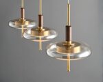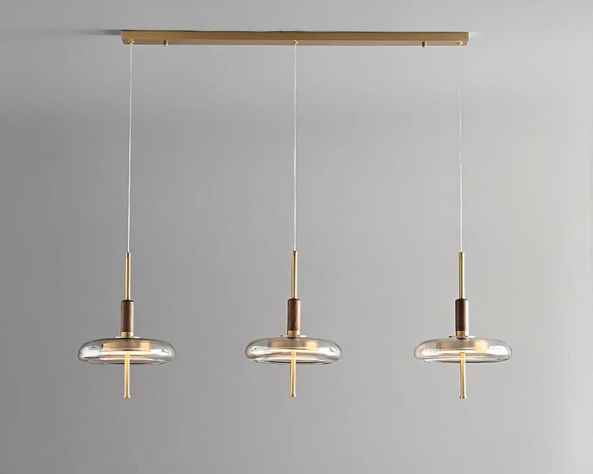 Cette suspension à trois têtes combine parfaitement fonctionnalité et style nordique moderne. Le laiton doré et le verre se marient pour créer une pièce d'éclairage qui est aussi pratique qu'attrayante, idéale pour des environnements qui valorisent à la fois la forme et la fonction.