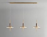 Adoptez cette suspension en laiton doré de style nordique pour un effet visuellement captivant dans votre salon ou salle à manger. Le design moderne et nordique avec trois sources lumineuses assure une ambiance accueillante tout en rehaussant le décor environnant.