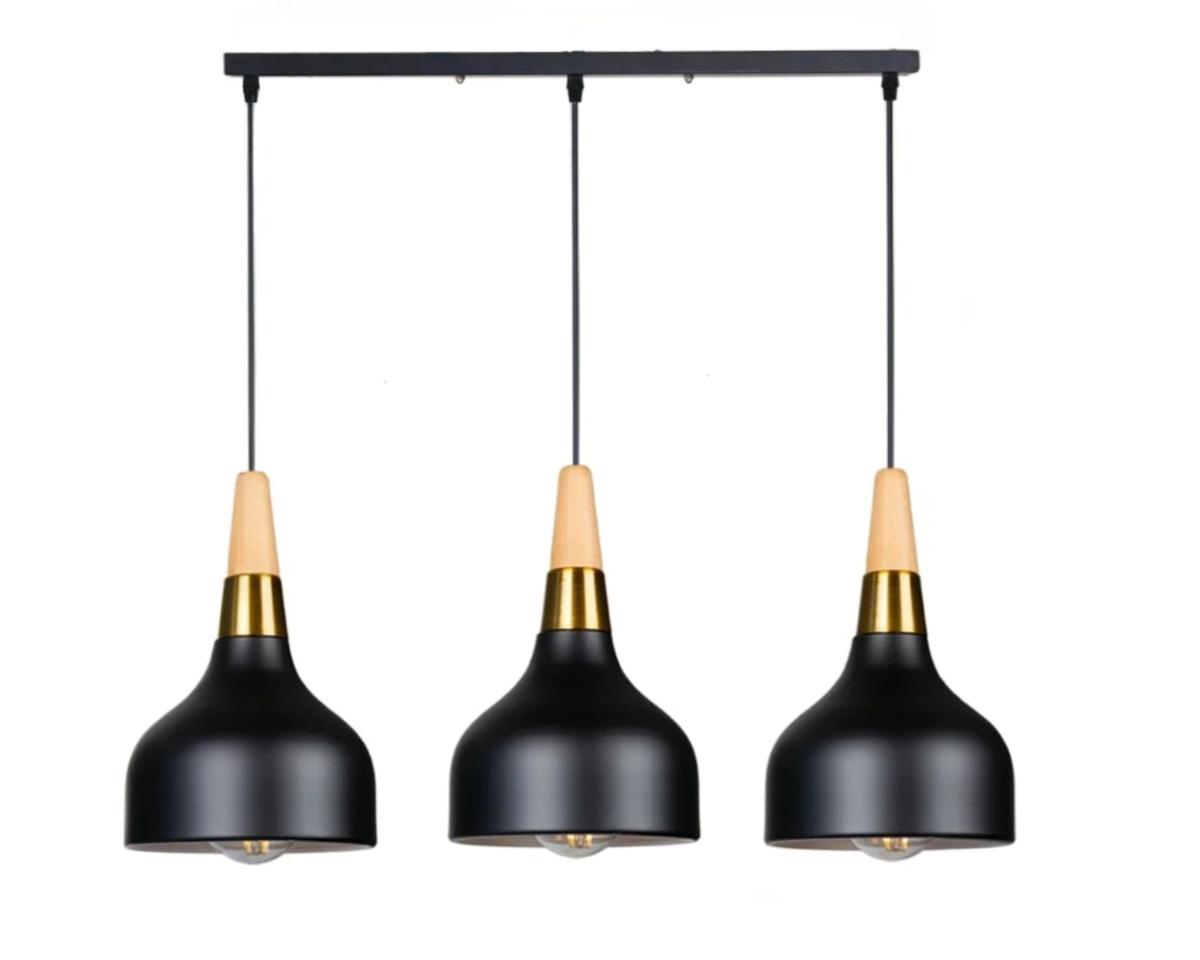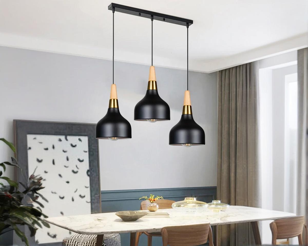 Explorez la beauté du minimalisme avec cette suspension à trois têtes. Le contraste entre le bois naturel et le métal noir crée une pièce centrale attrayante tout en fournissant une lumière abondante, idéale pour les salles à manger ou les espaces ouverts.