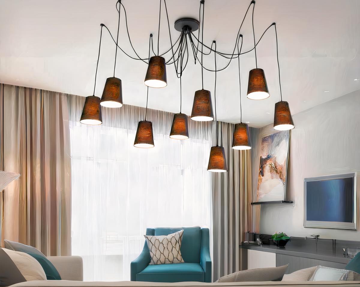 Que vous disposiez d'un grand salon ou d'une pièce plus petite, la suspension araignée design et moderne en tissu s'intègre parfaitement dans tous les espaces. Ses bras ajustables permettent de personnaliser la configuration pour s'adapter à vos besoins et à la taille de votre pièce. Une solution esthétique qui s'ajuste à votre environnement.