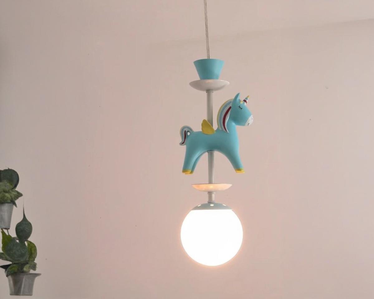 Cette suspension en forme de licorne apporte non seulement de la couleur et du style à une chambre d'enfant, mais offre également une fonctionnalité adaptable grâce à sa lumière variable. Elle permet de passer d'une illumination douce pour la lecture à une lumière plus vive pour les jeux, tout en restant un point focal enchanteur et inspirant.