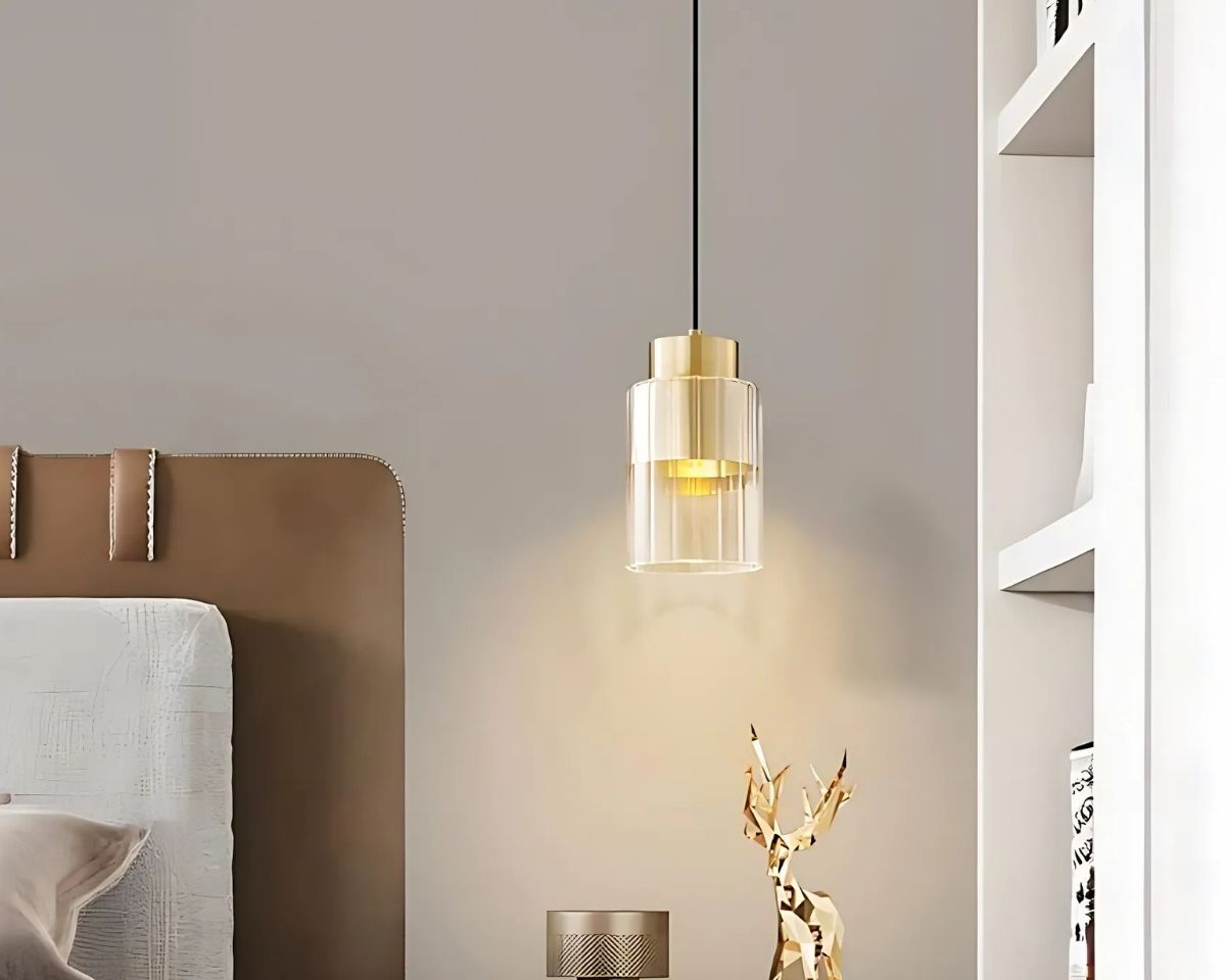 Cette suspension épurée présente une esthétique raffinée qui complémente parfaitement un décor moderne. Son corps en cuivre doré associé à des détails en verre crée un point focal élégant sans surcharger l'espace, parfait pour les zones nécessitant une touche de luxe discret.