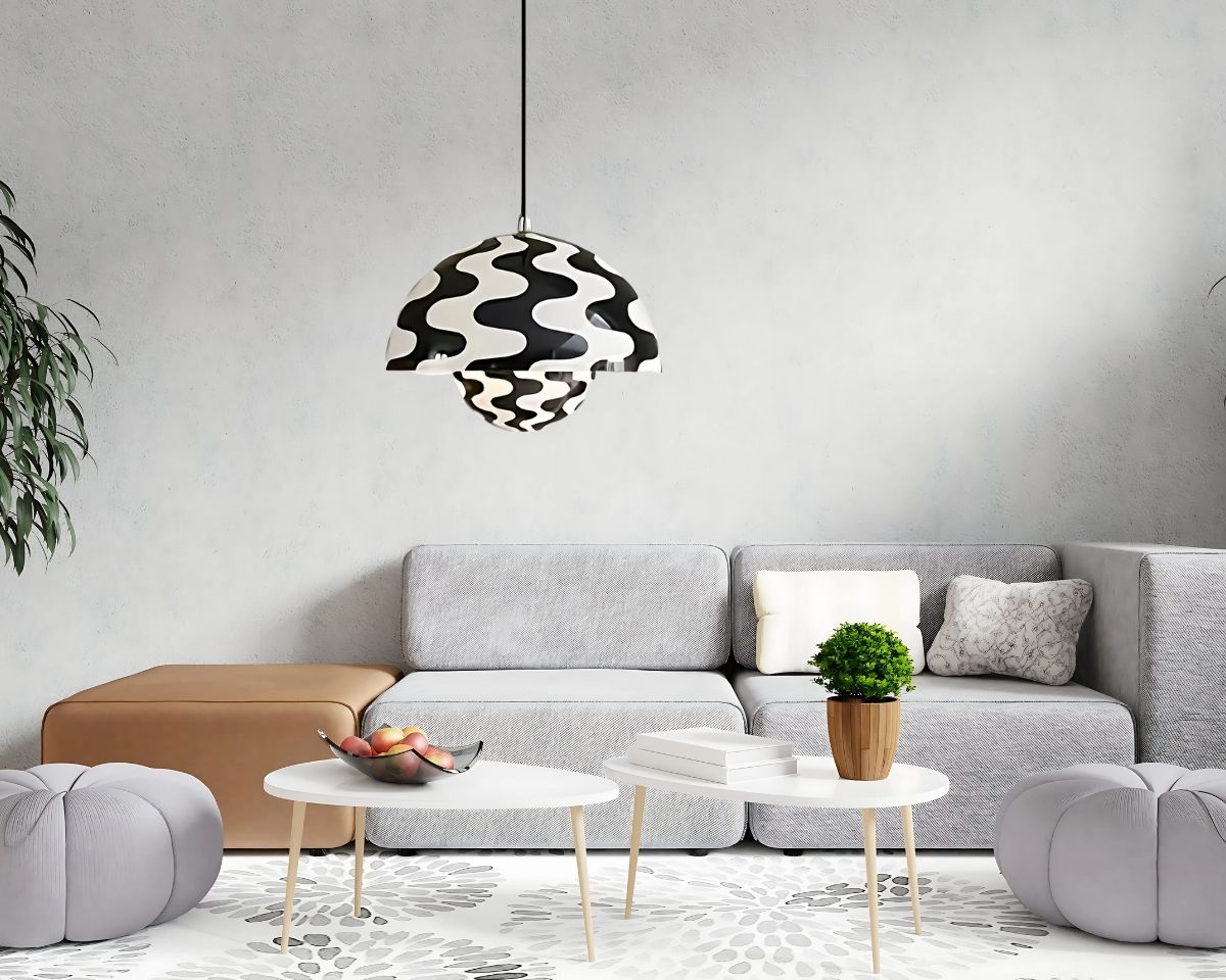 Cette suspension en forme de champignon modernise n'importe quel espace avec son design inspirรฉ de la nature, revu dans un style industriel. Les tons de noir et gris s'harmonisent parfaitement, offrant une source de lumiรจre ร la fois fonctionnelle et dรฉcorative pour les espaces modernes.