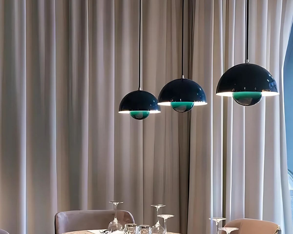 Intégrez cette suspension de couleur verte à votre décor pour une touche de fraîcheur. Le design en forme de champignon est non seulement pratique, mais aussi très décoratif, offrant une solution d'éclairage idéale pour ceux qui cherchent à combiner fonctionnalité et style dans des espaces restreints.