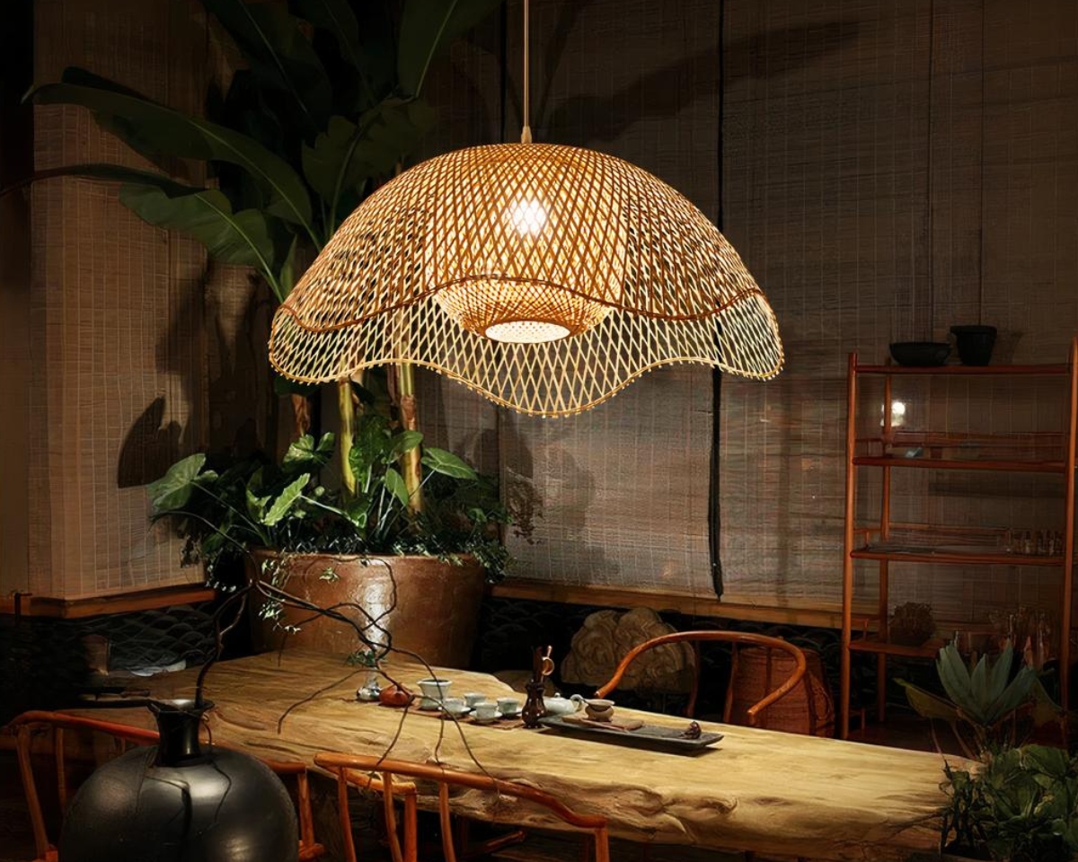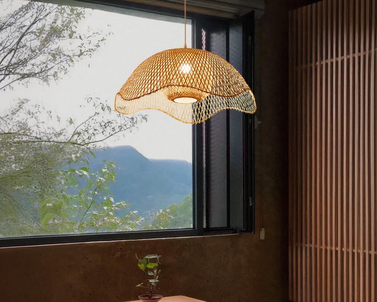 Adoptez cette suspension en bambou pour une fusion de l'élégance traditionnelle japonaise et du design contemporain. Sa forme de chapeau n'est pas seulement un choix esthétique, mais aussi un hommage à l'artisanat et à la culture japonaise, parfait pour un intérieur qui valorise l'authenticité et l'innovation dans le design.