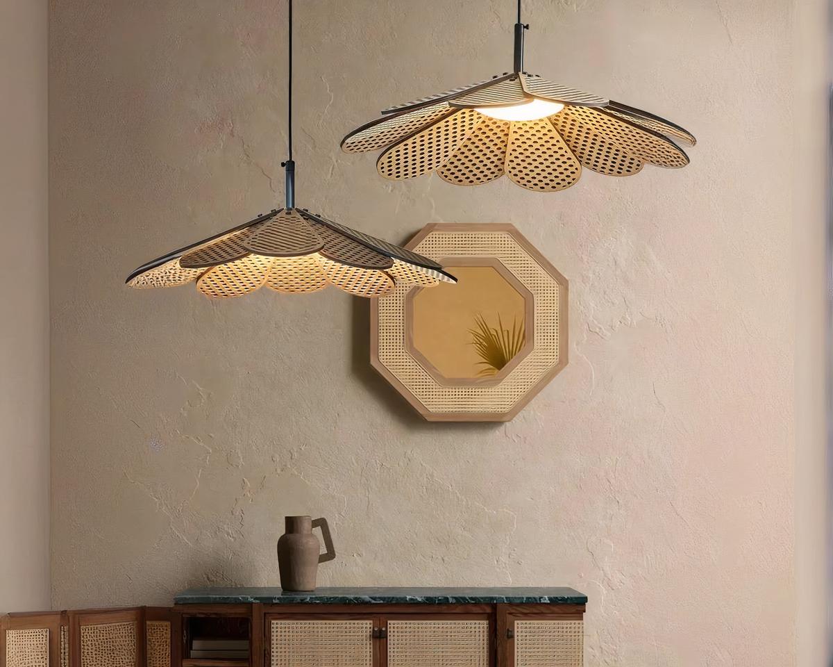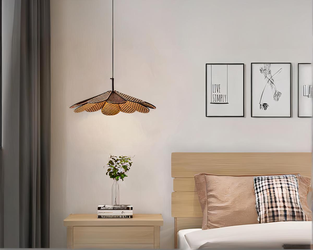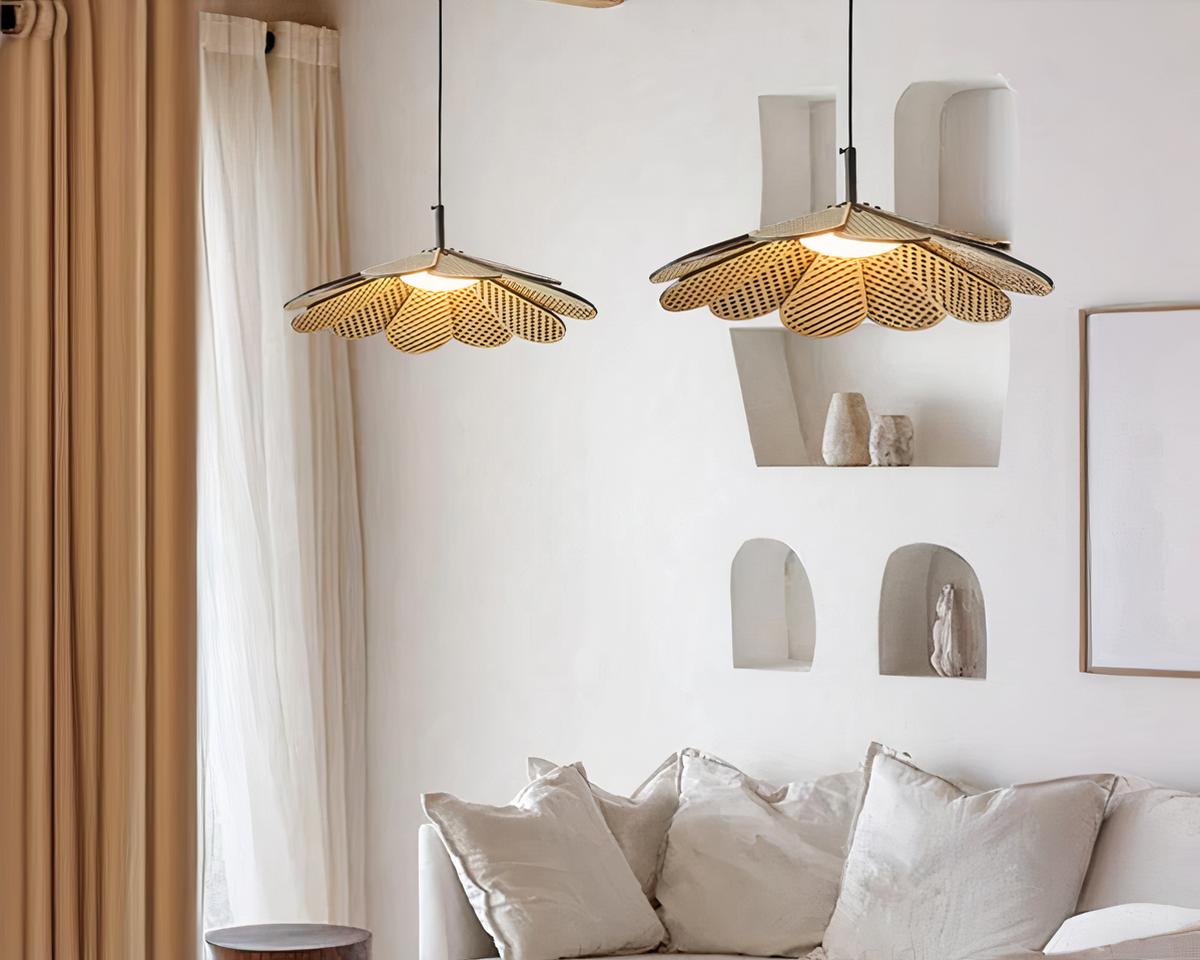 La suspension bambou en forme de pétale est inspirée des formes délicates de la nature. Sa structure en pétales de bambou diffuse une lumière chaleureuse et enveloppante, idéale pour créer une atmosphère détendue dans n’importe quelle pièce. Que ce soit dans un salon, une chambre ou une salle à manger, ce luminaire floral devient rapidement le point central de votre décoration grâce à son charme naturel et son design unique.