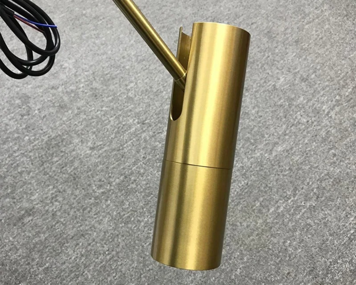 Cette suspension à deux têtes en aluminium doré offre une solution d'éclairage exceptionnelle pour votre chambre. Son design moderne, combiné à la finition dorée, fait de ce luminaire un élément central de tout décor contemporain. Il fournit une lumière abondante, idéale pour créer une atmosphère chaleureuse et accueillante, tout en ajoutant un flair esthétique notable.