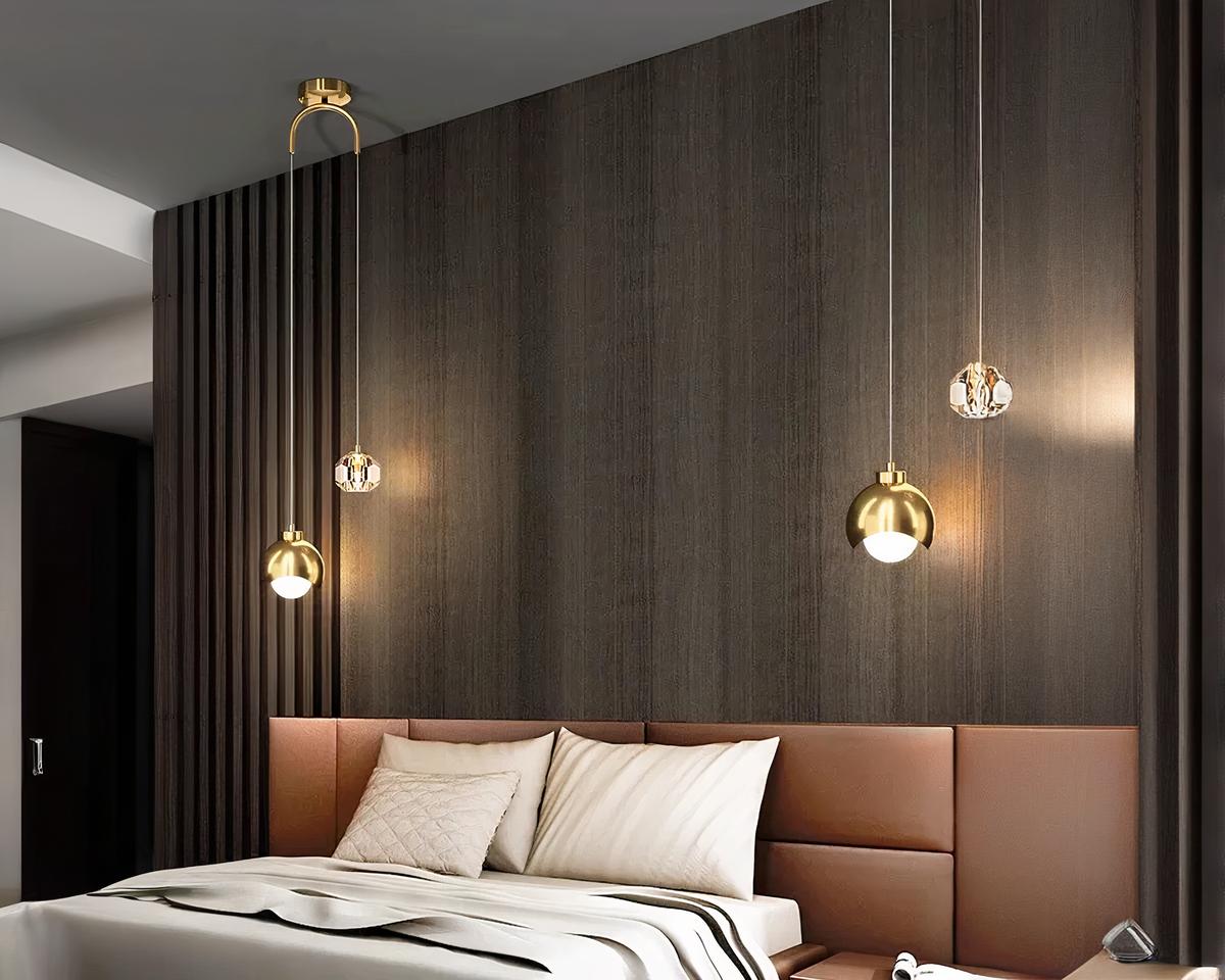 Redéfinissez l'élégance de votre espace personnel avec cette suspension dorée. Fabriquée en fer robuste et embellie par des cristaux scintillants, elle offre un éclairage luxueux qui met en valeur chaque recoin de votre chambre. Sa présence lumineuse et son design distinctif en font un choix idéal pour ceux qui cherchent à mêler esthétique contemporaine et touches de splendeur.