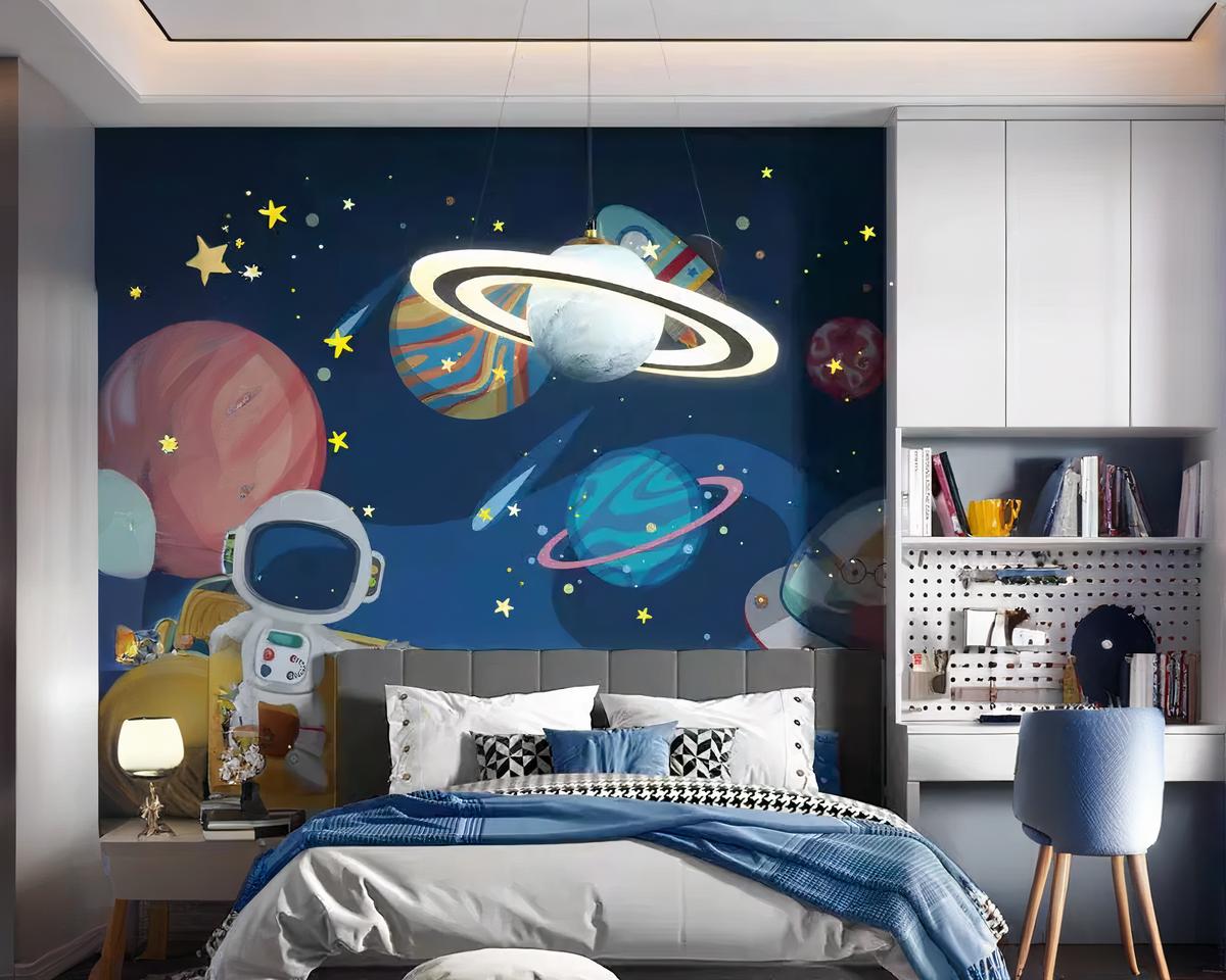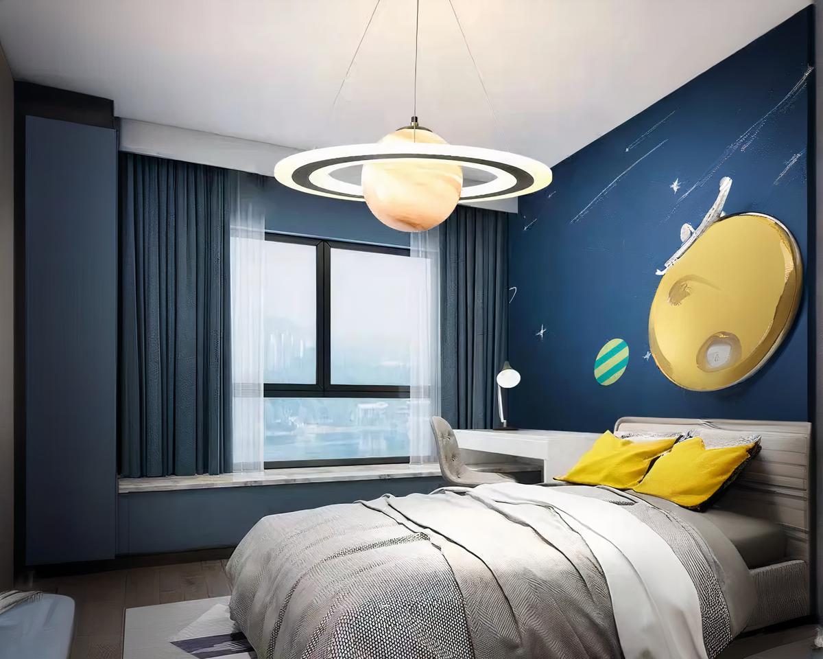 Conçue spécifiquement pour les chambres de garçons, la suspension chambre garçon moderne au design de planète s'intègre harmonieusement avec divers thèmes décoratifs. Que la chambre de votre enfant soit décorée avec des motifs spatiaux, des super-héros ou des voitures, cette suspension s'harmonise parfaitement et ajoute une touche de magie.