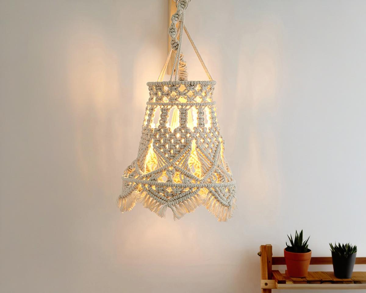 Cette suspension en macramé n'est pas seulement un objet d'éclairage, c'est une œuvre d'art. Chaque nœud et chaque tresse a été façonné à la main pour créer un objet unique qui attire le regard et illumine votre pièce d'une lumière douce et enveloppante.