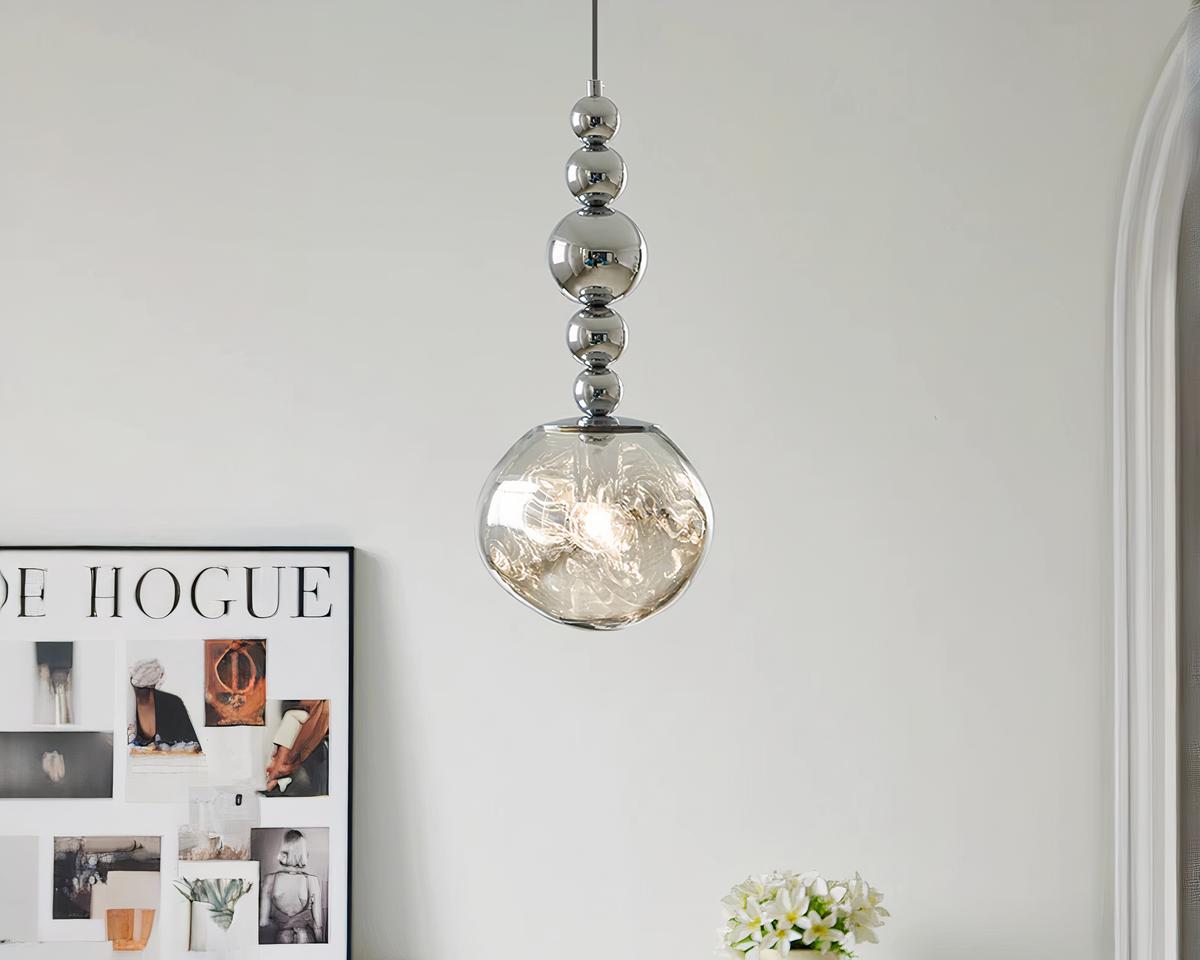 Découvrez l'élégance intemporelle avec cette suspension unique en son genre, qui allie la beauté du verre fumé à l'esthétique du métal. L'arrangement en cascade des boules de verre offre une diffusion lumineuse qui évoque la douceur et la fluidité. Chaque boule est conçue pour capturer et refléter la lumière, créant un effet visuel captivant qui attire l'attention et invite au calme.