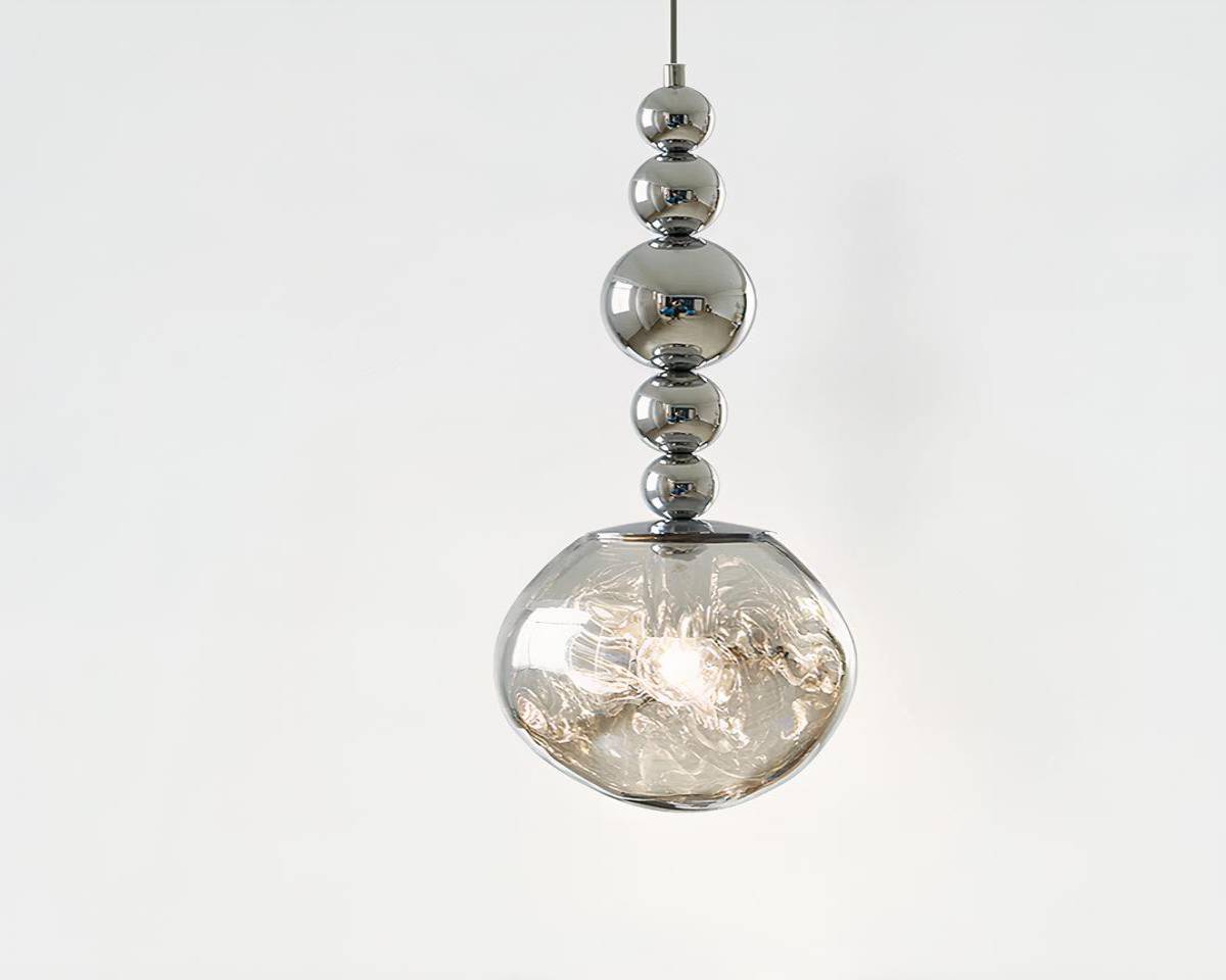 Explorez une nouvelle dimension de l'éclairage avec cette suspension élégante, composée de cinq boules en verre fumé superposées. Chacune des sphères est méticuleusement arrangée pour maximiser l'impact visuel et lumineux. Cette pièce apporte non seulement un éclairage ambiant adouci par la teinte fumée du verre, mais aussi un accent décoratif contemporain à votre espace.