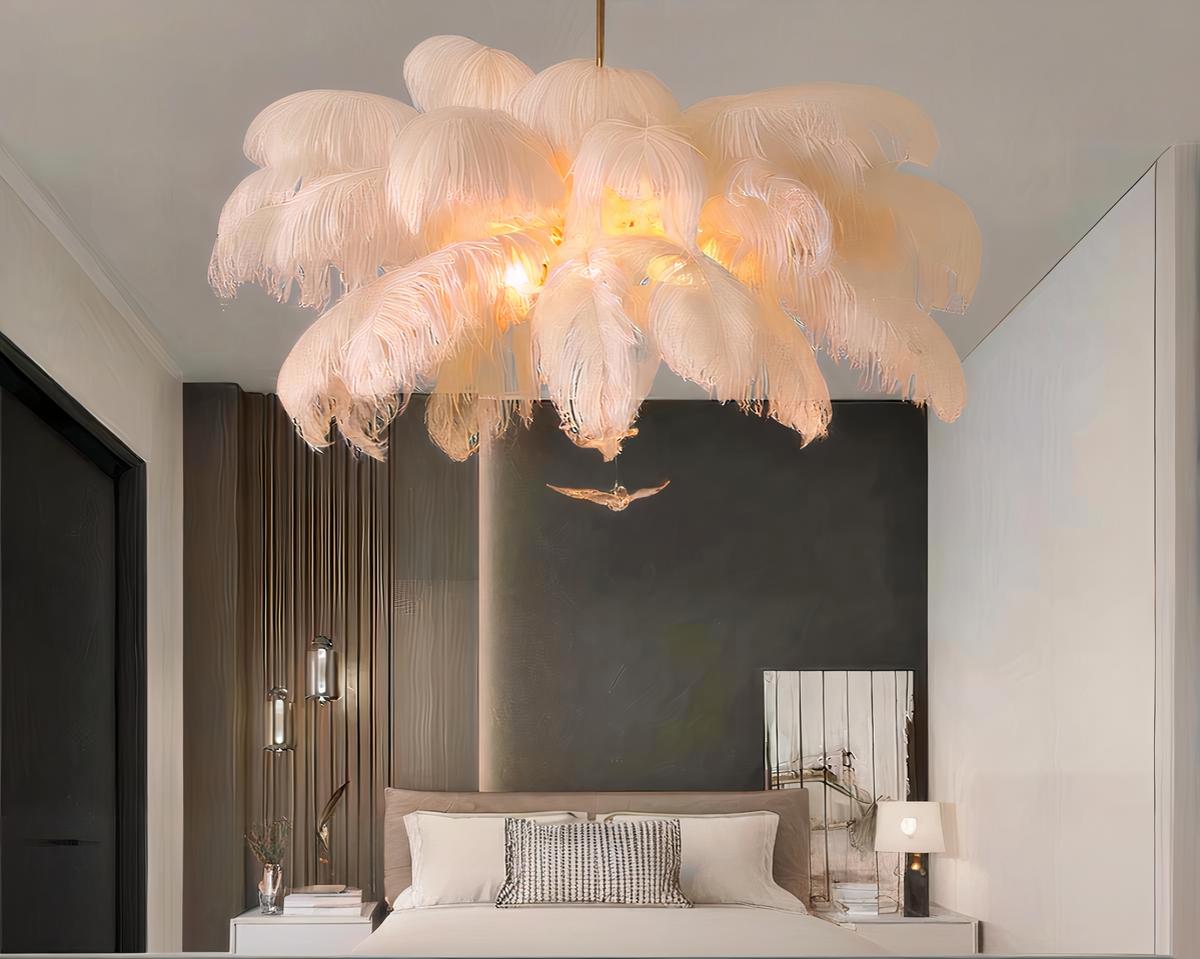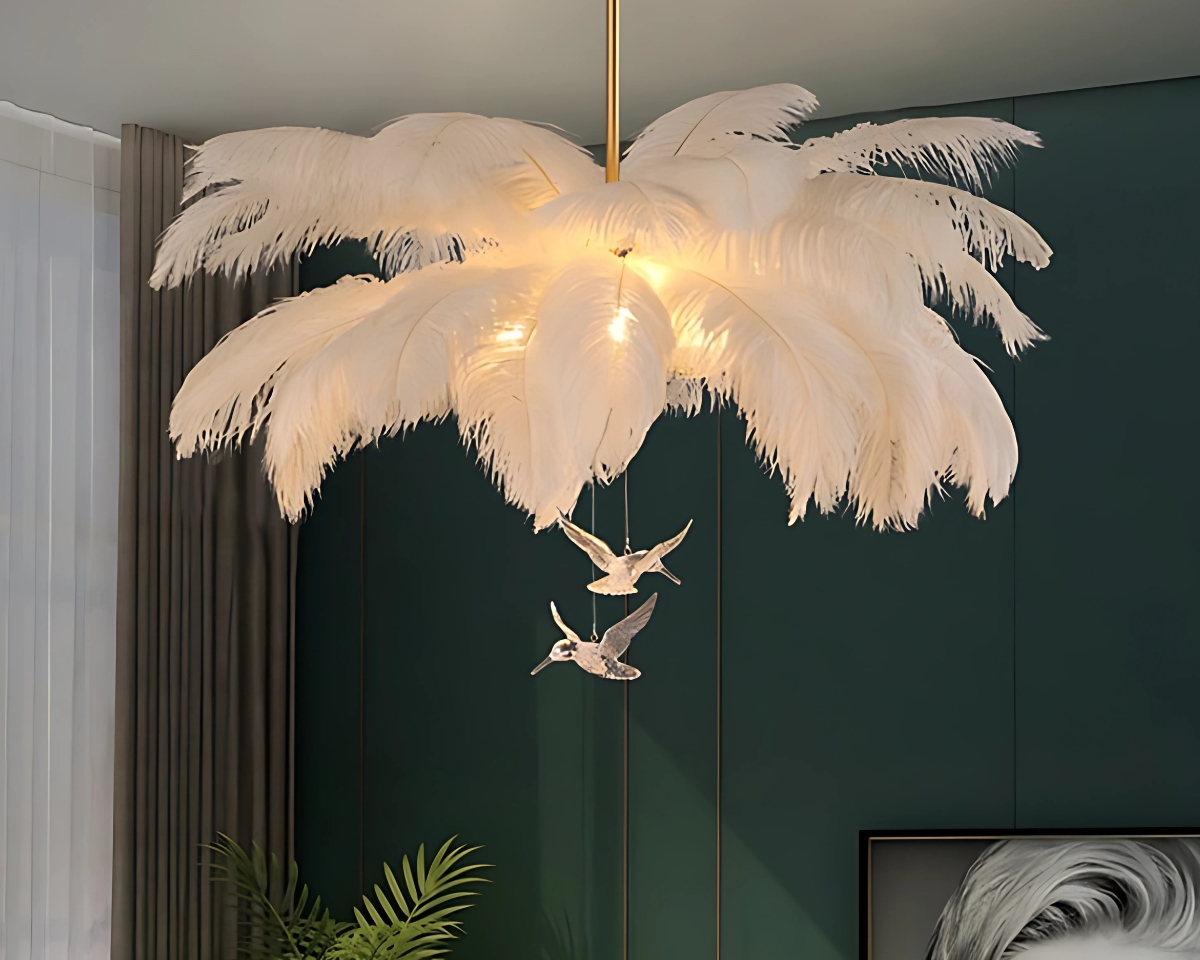 Adoptez cette suspension design pour une ambiance légère et moderne inspirée par la nature. Le motif de feuilles tropicales en plume offre une interprétation artistique de la flore exotique, idéale pour un salon ou une salle à manger où le style contemporain rencontre le charme naturel.
