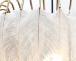 Apportez une dimension de luxe à votre intérieur avec cette suspension en plume dorée. Son design artistique et les plumes blanches accentuées par la structure dorée créent un effet visuel impressionnant, idéal pour les salons ou les espaces de réception où le style ne passe pas inaperçu.