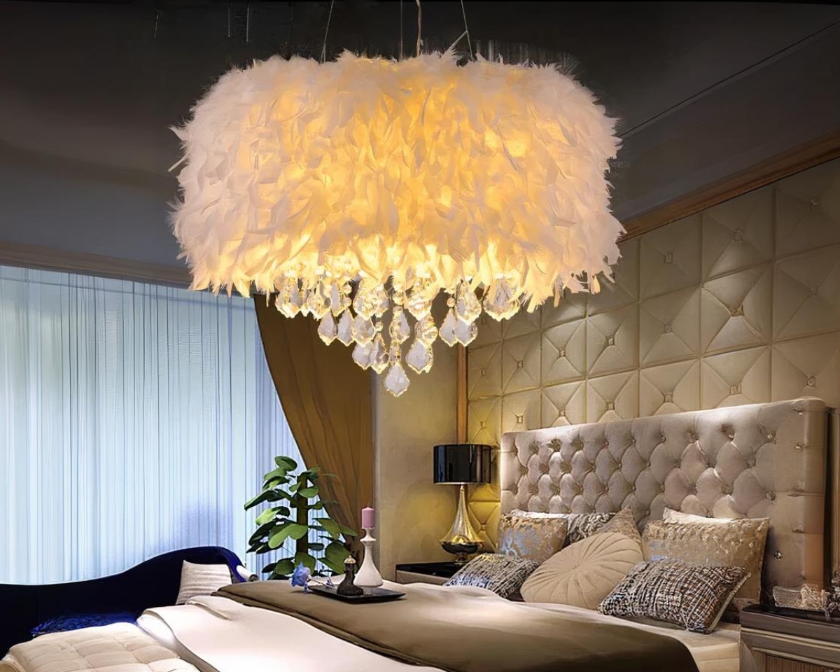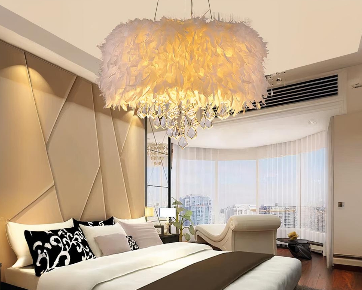 Cette suspension en plumes blanches est l'incarnation du romantisme moderne. Elle associe la douceur des plumes à un design contemporain, offrant une lumière douce et enveloppante qui transforme n'importe quel espace en un havre de tranquillité et de style au quotidien.