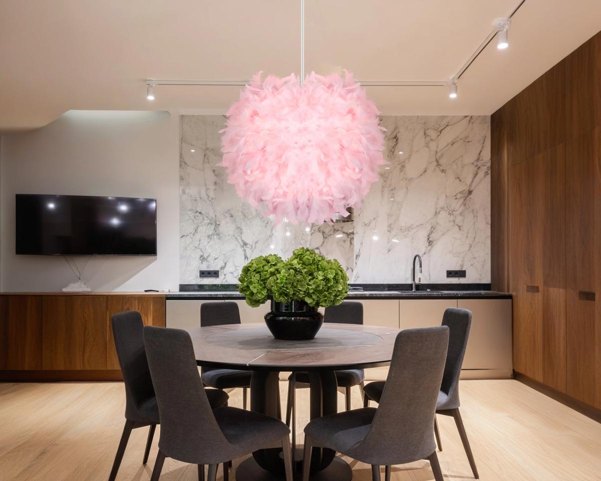 Intégrez cette suspension en plume rose dans votre espace pour apporter une touche de modernité tout en conservant une atmosphère douce et accueillante. Le design élégant et la couleur vive mais apaisante en font un excellent choix pour des zones intimes comme les chambres ou les coins lecture.