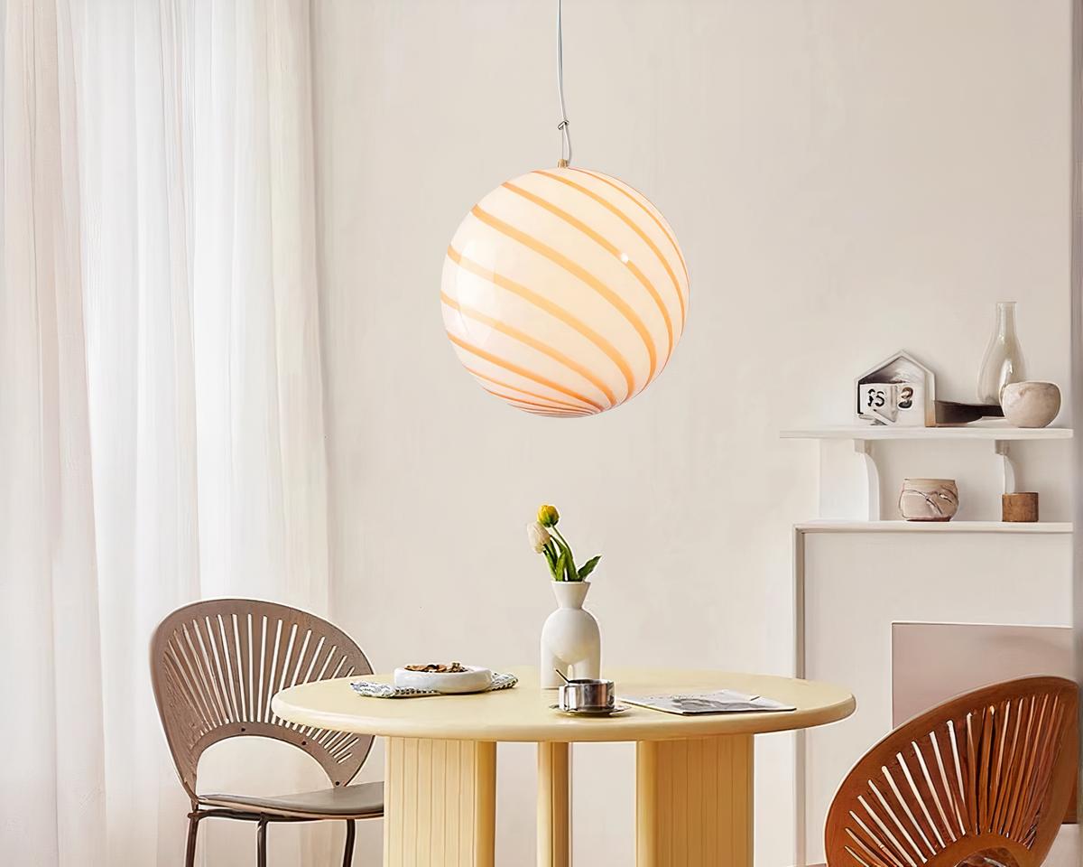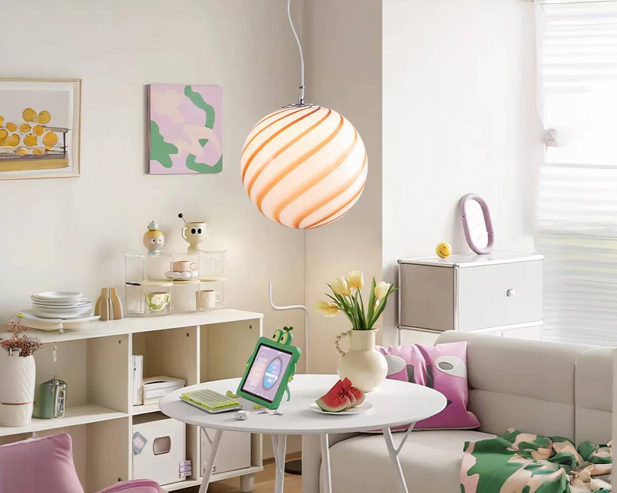 Cette suspension se distingue par son élégante forme ronde agrémentée de délicates stries roses. Ce motif apporte du dynamisme à son design tout en restant subtil et moderne. Parfaite pour une chambre ou un salon, cette suspension s’intègre aisément dans les intérieurs contemporains ou classiques. Elle devient rapidement la pièce maîtresse de la pièce tout en créant une ambiance accueillante et douce.