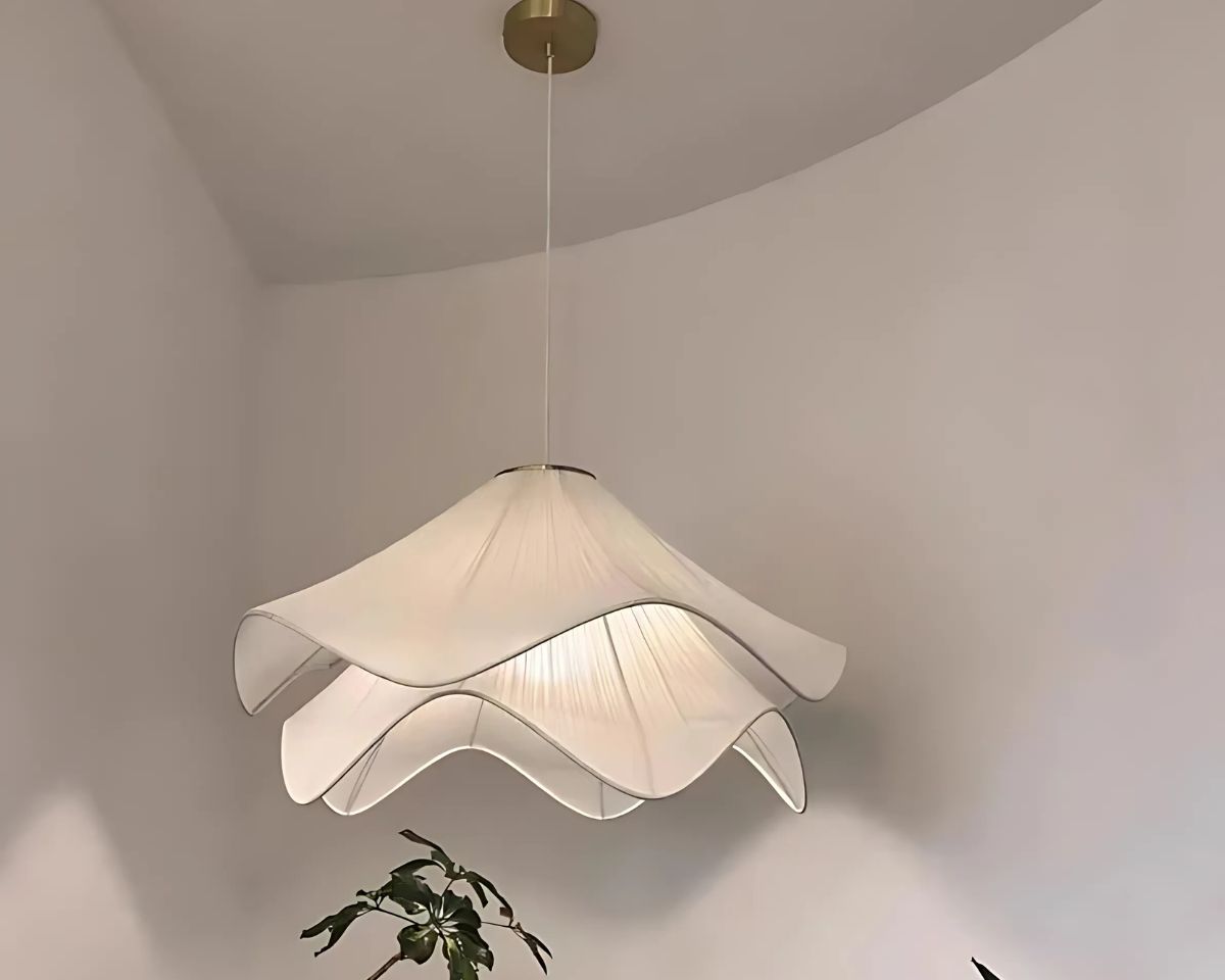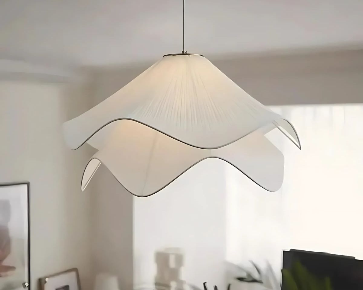 Cette suspension élégante en tissu blanc est conçue pour apporter une lumière douce et apaisante, idéale pour une ambiance relaxante dans votre salon, chambre à coucher, ou au-dessus de votre espace de travail. Sa forme ondulée et son tissu blanc diffusent la lumière de manière homogène et subtile, créant des jeux de lumière fascinants sur les murs environnants. Le design de cette suspension n'est pas seulement fonctionnel, il est également artistiquement captivant pour s'adapter à n'importe quel décor intérieur.