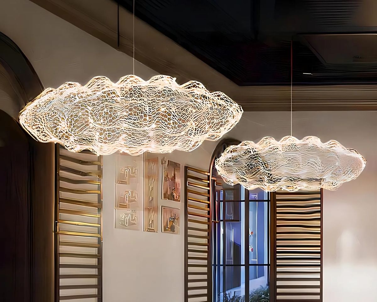 Cette suspension décorative apporte une touche artistique unique grâce à sa forme de nuage et sa finition dorée. Elle illumine non seulement par sa lumière mais aussi par son design audacieux, idéal pour ceux qui cherchent à ajouter une expression moderne et créative à leur environnement.