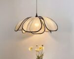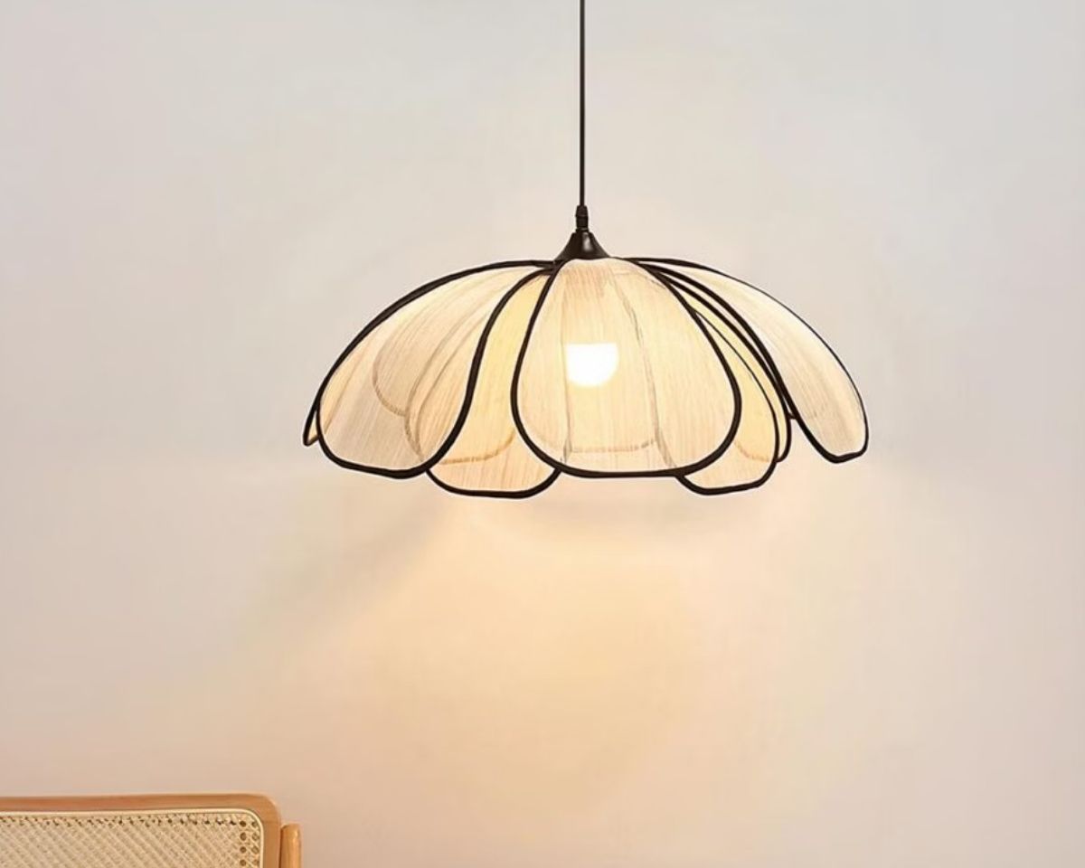 Cette suspension en forme de pétale est conçue pour apporter une touche de tranquillité nordique à votre intérieur. Le mélange de rotin blanc et de fer crée un contraste subtil, offrant à la fois robustesse et élégance naturelle. Sa lumière, doucement diffusée, transforme n'importe quelle pièce en un havre de paix inspiré par la simplicité du design scandinave.