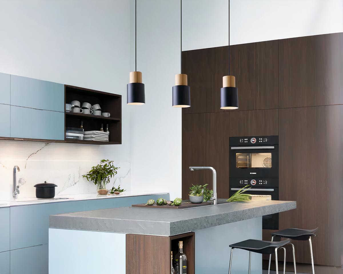 Optez pour cette suspension élégante et fonctionnelle qui fusionne le bois avec l'aluminium pour un résultat à la fois moderne et chaleureux. Compacte, elle est idéale pour les petits espaces, offrant un éclairage puissant sans encombrer votre cuisine. Le contraste entre le bois naturel et l'aluminium noir apporte une dimension esthétique unique, parfaite pour les intérieurs modernes cherchant à combiner style et fonctionnalité.