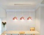 Cette suspension élégante avec trois têtes en pétales roses crée un éclairage enchanteur. Chaque tête émet une lumière douce, créant une ambiance chaleureuse, parfaite pour un salon ou une salle à manger où le style rencontre le confort dans une atmosphère florale.