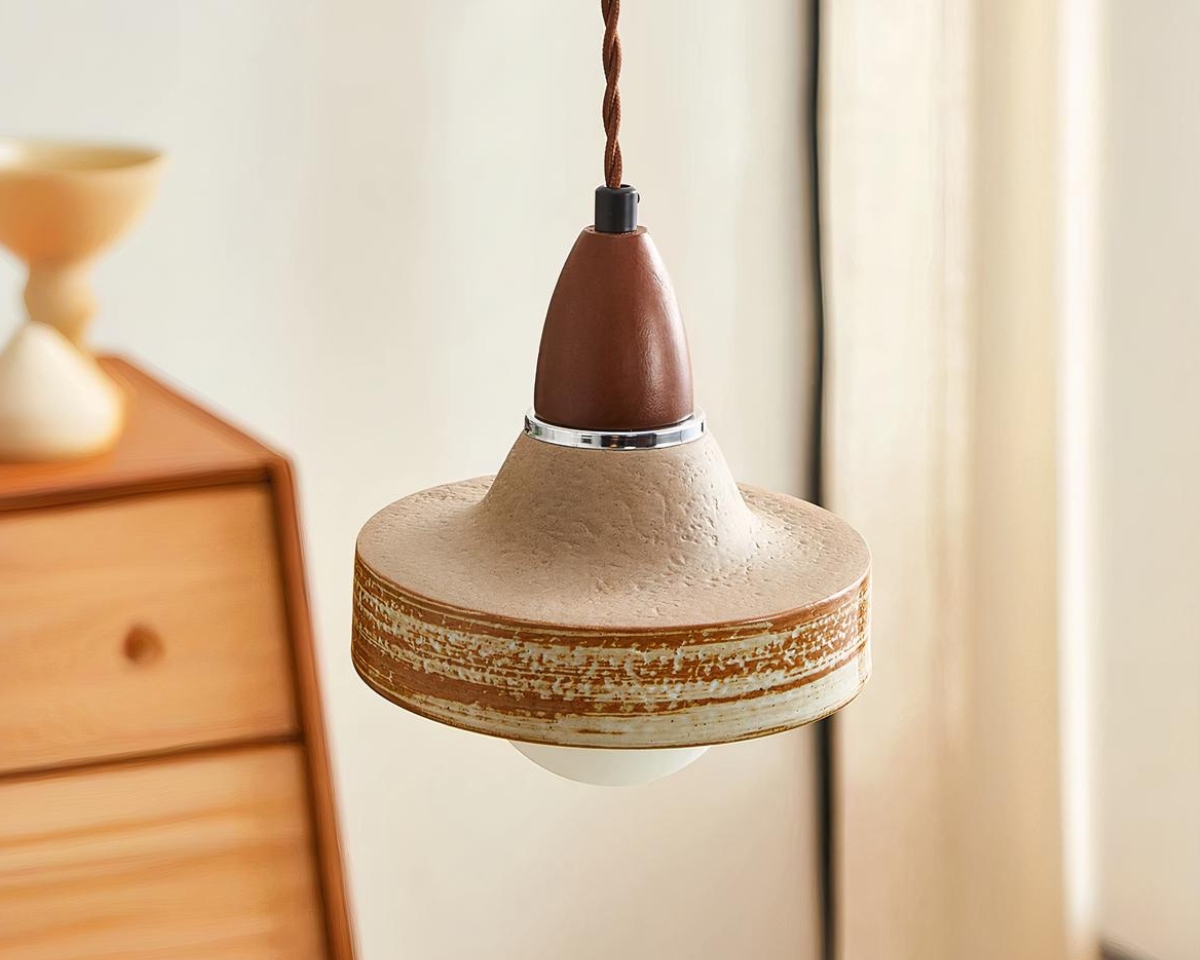 Plongez dans le charme d'une autre époque avec cette suspension en terre cuite de style japonais rétro. Les couleurs marron et grise se marient pour offrir un look vintage qui complète à merveille un intérieur contemporain ou traditionnel. Cette pièce, tout en apportant une note de nostalgie, reste ancrée dans la praticité moderne.