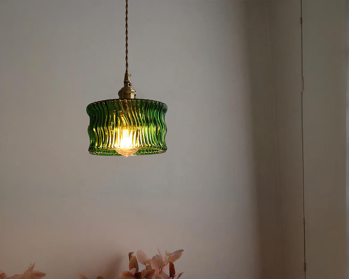 Intégrez cette suspension en verre vert pour apporter une touche de nostalgie à votre espace de vie. Le design vintage, combiné à la modernité du verre et du cuivre, crée une pièce d'éclairage unique qui s'harmonise parfaitement avec les intérieurs modernes ou classiques. C'est l'ajout idéal pour ceux qui cherchent à combiner l'ancien et le nouveau dans leur décoration.