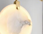 Élevez le style de votre escalier avec cette suspension ronde en marbre et fer doré. Conçue pour refléter le luxe et la sophistication, elle offre une lumière douce qui met en valeur l'architecture environnante tout en ajoutant un attrait esthétique indéniable. Idéale pour les foyers qui cherchent à impressionner, cette lampe combine durabilité et design haut de gamme.