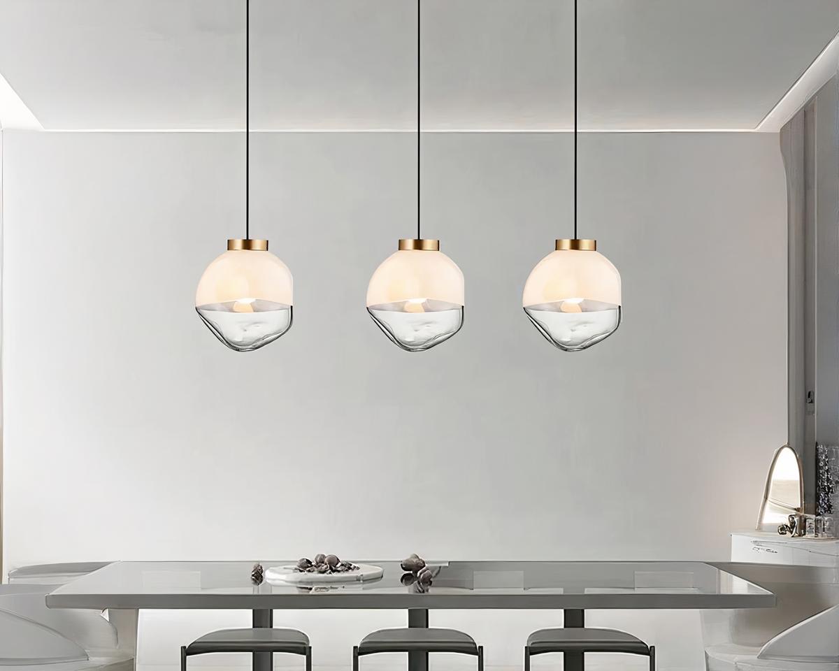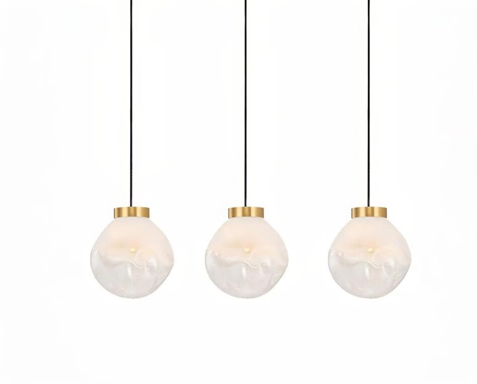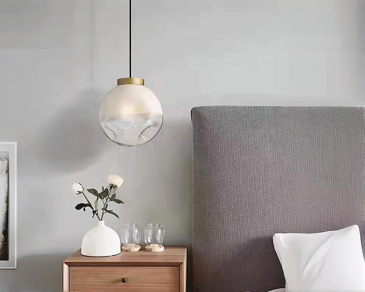 La suspension filaire chic et moderne en boule de verre se distingue par sa structure innovante. Son design en filigrane léger crée une illusion de légèreté tout en assurant une stabilité parfaite. La combinaison du verre et de la structure filaire ajoute une dimension artistique à votre décoration, faisant de cette suspension un véritable objet de désir.