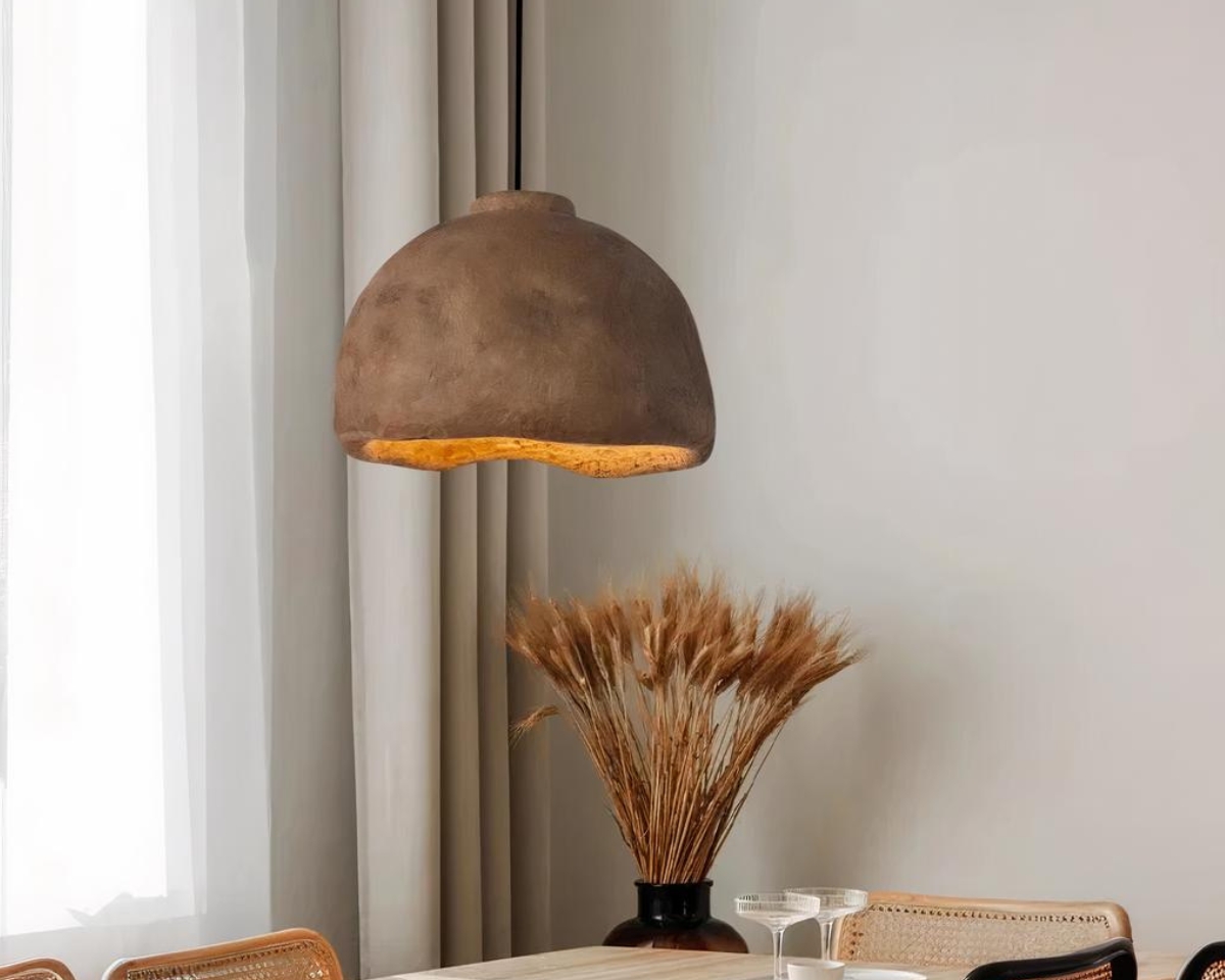 Adoptez cette suspension unique en terre cuite pour une touche de style japonais dans votre maison. Sa forme et sa couleur marron ajoutent une profondeur visuelle, tandis que le polystyrène assure légèreté et durabilité. Elle est idéale pour ceux qui recherchent une pièce à la fois belle et pratique.