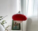 Cette suspension ne se contente pas de compléter votre décoration intérieure avec son design vintage, elle offre également un éclairage doux et invitant, idéal pour créer une atmosphère détendue et chaleureuse dans votre maison. La teinte rouge du verre enrichit la lumière diffusée, ajoutant une touche de couleur vibrante à votre espace.