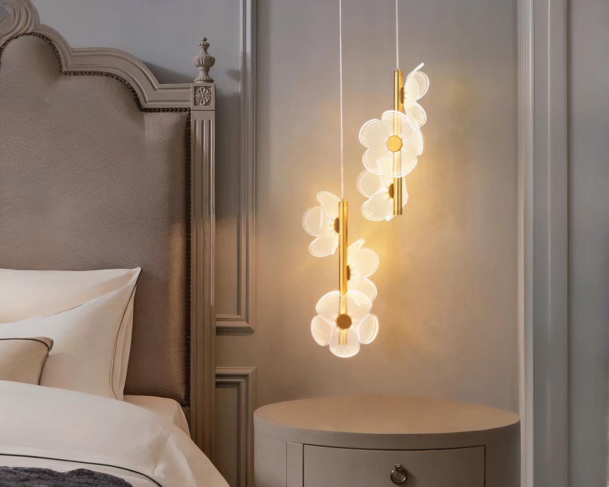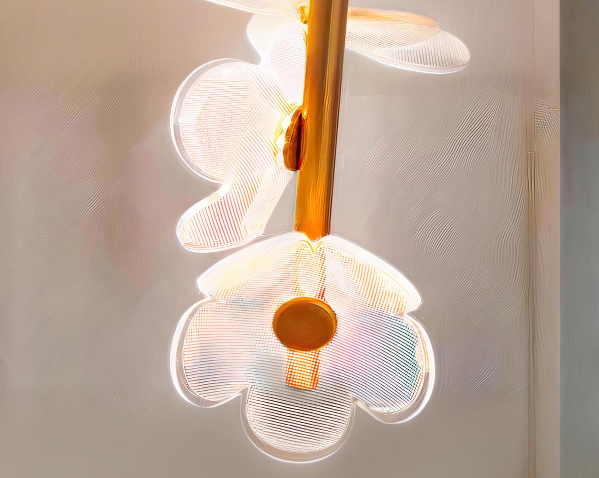 Offrez à votre intérieur une touche de luxe avec cette suspension à deux têtes ornée de fleurs en acrylique. Le fini doré ajoute une dimension de raffinement, tandis que l'agencement des fleurs crée une source de lumière à la fois fonctionnelle et artistique. Parfaite pour ceux qui valorisent un design soigné et un éclairage qui parle d'élégance.