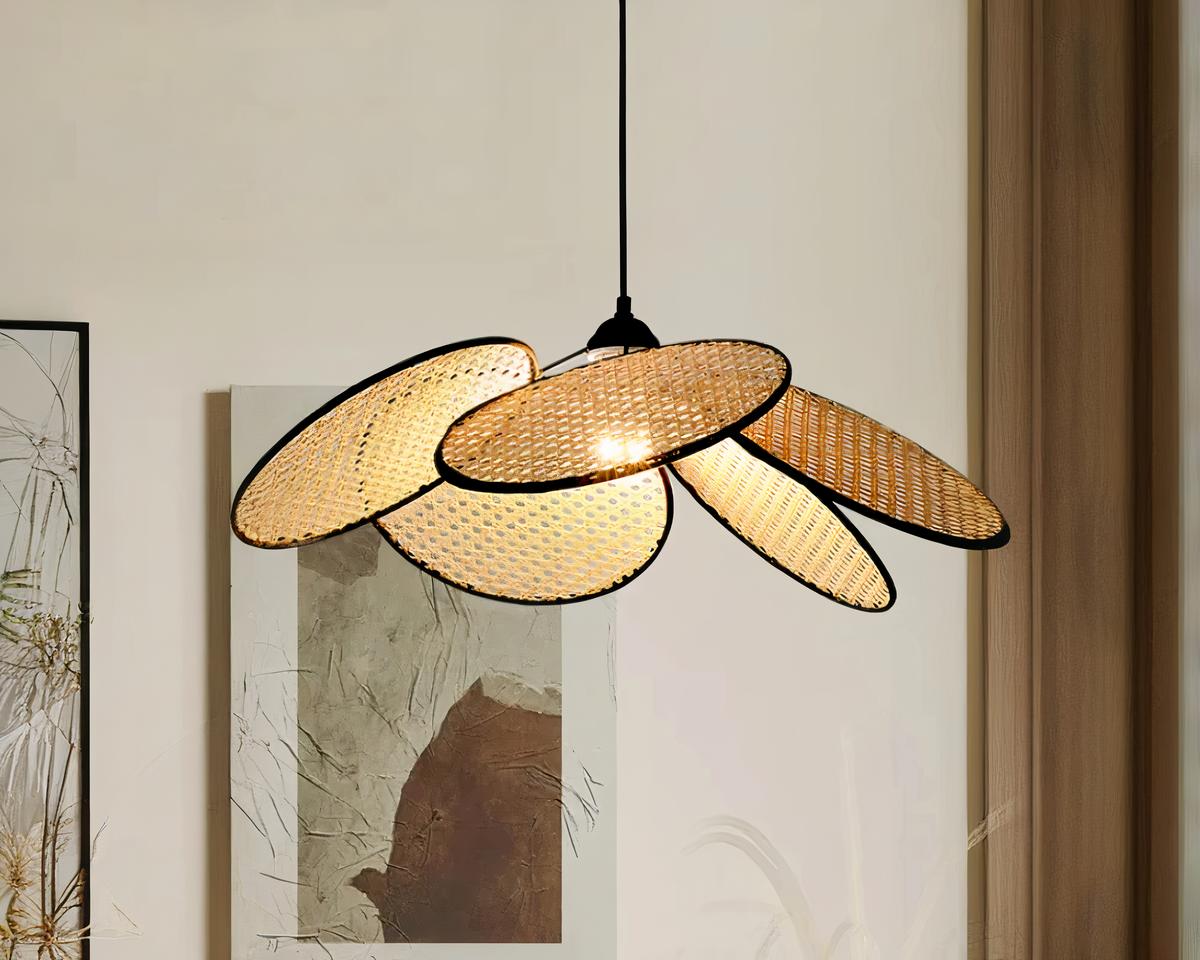 Éclairez votre espace de vie avec cette suspension en rotin, où chaque pétale tissé diffuse une lumière douce, créant une atmosphère paisible et chaleureuse. Parfaite pour les intérieurs bohèmes ou rustiques, elle complète merveilleusement les décors en quête d'authenticité et de charme naturel. Son allure aérée et légère fait de cette suspension un excellent choix pour élever l'esthétique de votre maison tout en conservant une simplicité élégante.