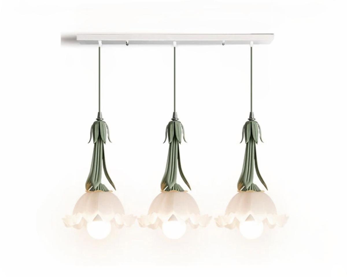 Adornez votre intérieur avec cette suspension élégante à trois têtes florales. Conçue en fer et verre, chaque fleur pend élégamment, offrant une lumière douce qui met en valeur la pureté et la fraîcheur des couleurs verte et blanche. Ce luminaire vintage est parfait pour créer une ambiance accueillante et sereine dans n'importe quel espace de vie.