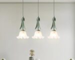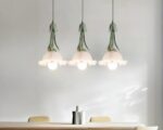 Élevez votre décoration avec cette suspension à trois fleurs en fer et verre. Les nuances de vert et de blanc reflètent une beauté naturelle, tandis que la structure en fer garantit durabilité et style. Parfaite pour les entrées ou les salons, elle offre une lumière chaleureuse qui invite à la détente et à l'admiration.