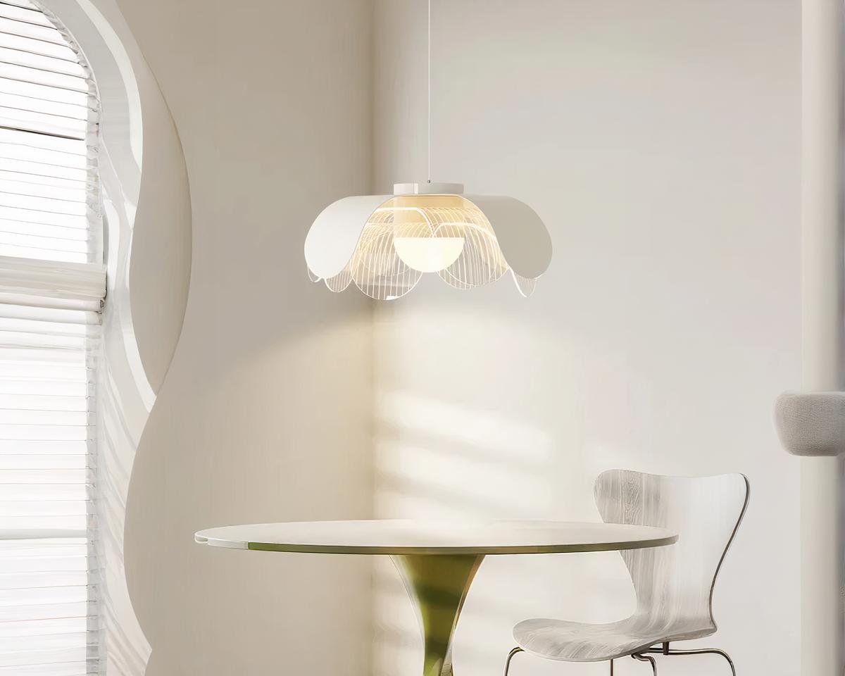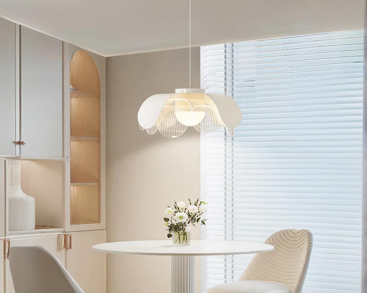 Expérimentez la tranquillité et la beauté de la nature à l'intérieur de votre foyer avec cette suspension élégante au design de fleur. Idéale pour les salons ou les chambres à coucher, elle projette une lumière douce qui traverse chaque pétale, créant des jeux de lumière fascinants et un environnement accueillant.