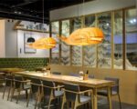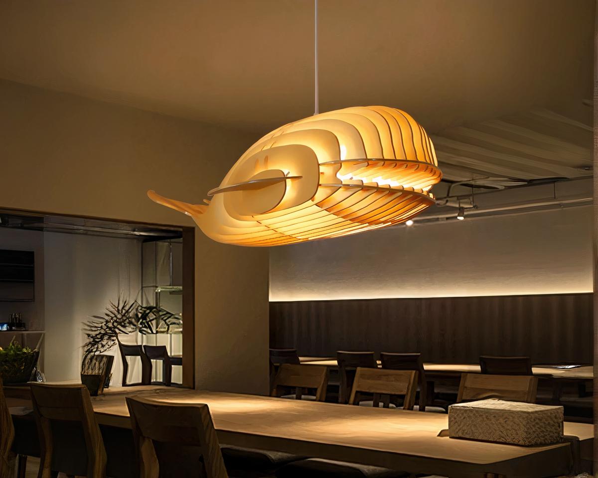 Cette suspension unique, prenant la forme d'une baleine, transforme un espace ordinaire en une étendue maritime. Le bois beige, associé à des détails en fer, crée un point focal qui est à la fois décoratif et conversationnel, parfait pour un salon ou une chambre d'enfant.