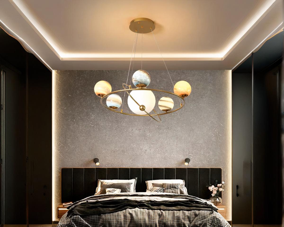 Cette suspension n'est pas seulement un appareil d'éclairage, c'est une pièce d'art qui stimule l'imagination. Avec son design rappelant un arrangement de planètes, elle est parfaite pour susciter des conversations et des admirations, ajoutant une dimension narrative et artistique à votre décor.