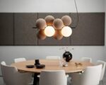 Cette suspension, avec ses boules en verre dispersant une lumière chaleureuse, réinterprète les éléments nordiques de design. Les couleurs marron et blanche ajoutent une dimension de calme et de sophistication, rendant cette pièce un choix parfait pour ceux qui apprécient la finesse et la fonctionnalité dans leur aménagement intérieur.