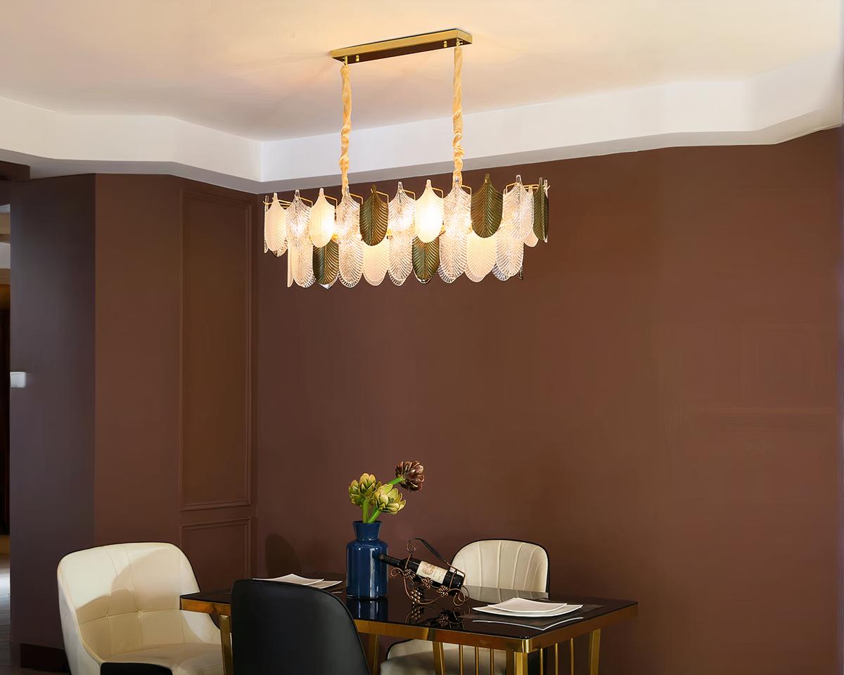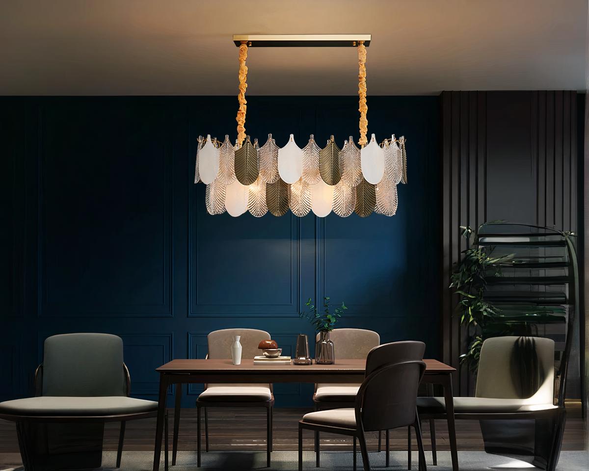 Notre suspension adopte un design feuillu en métal, disponible en finitions dorée et argentée, qui reflète non seulement la lumière, mais aussi le goût exquis de son propriétaire. Sa forme artistique en fait plus qu'un simple luminaire, c'est une œuvre d'art.