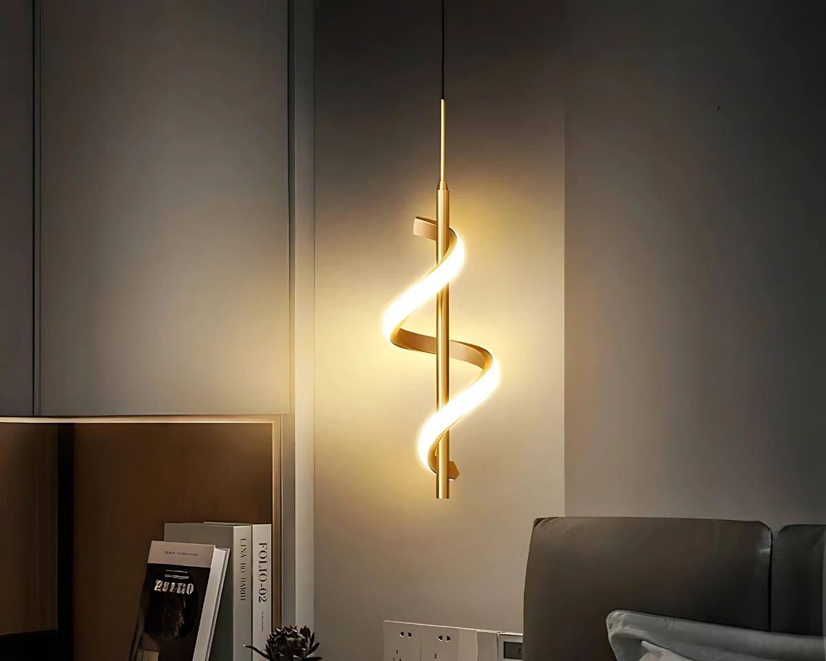 Suspension LED design et dorée en spirale