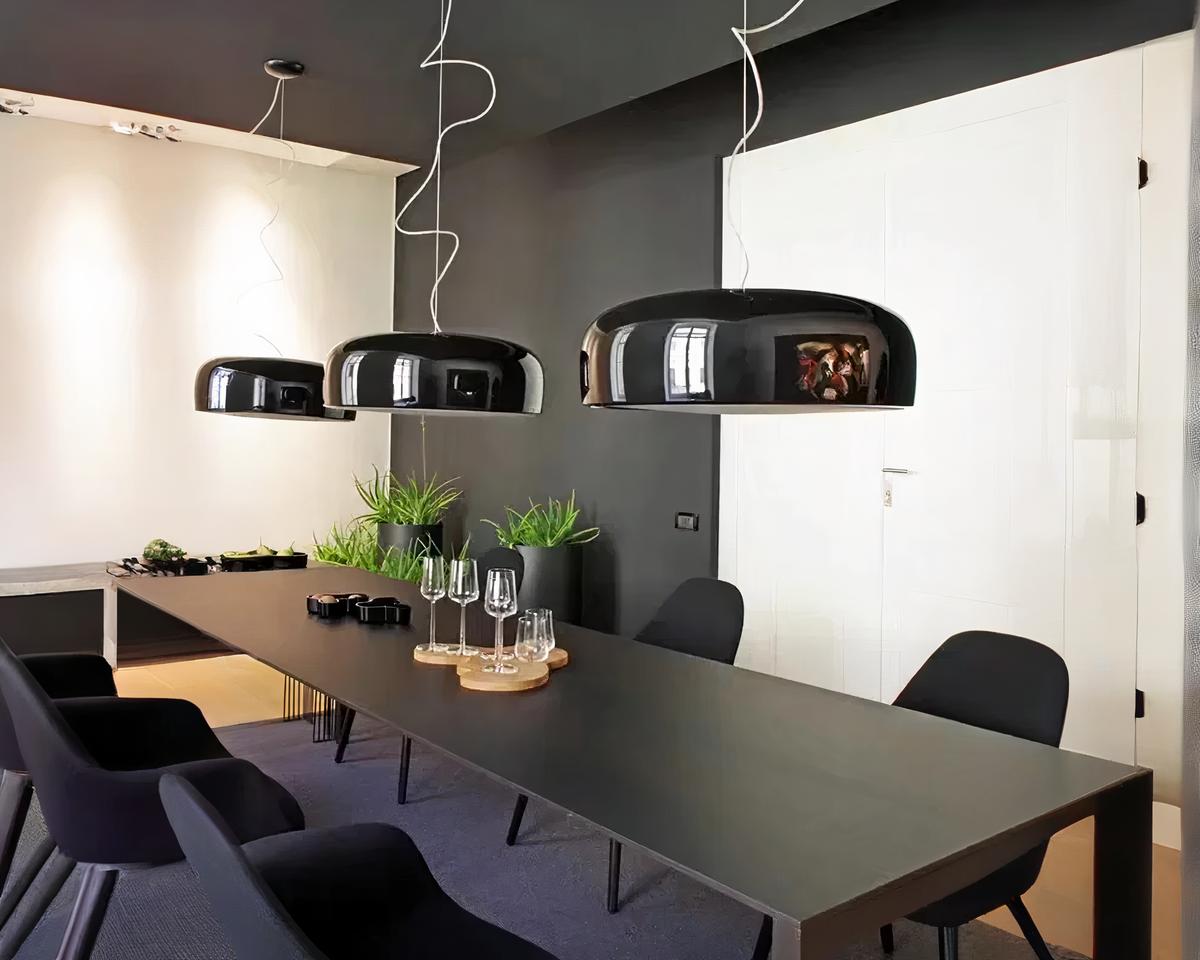 Le look épuré et le noir profond de cette suspension noire apportent une touche audacieuse à votre espace. Ce design élégant s'intègre harmonieusement dans des décors minimalistes ou contemporains, offrant une belle opposition de lumière et d'obscurité. Parfait pour des ambiances sobres, mais captivantes, où chaque détail compte.