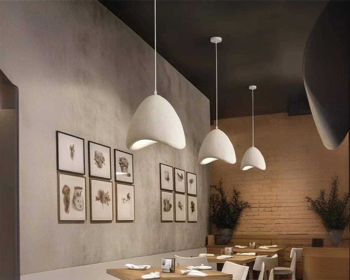 Avec son design unique en forme de cloche et sa surface texturée blanche, cette suspension s’intègre avec aisance dans divers décors, des intérieurs modernes aux espaces plus traditionnels. Elle est particulièrement efficace pour rehausser le style sans alourdir visuellement l'espace, apportant un élément de design raffiné et subtil qui complémente toute palette de couleurs.