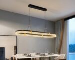 La suspension ovale noire en aluminium est le choix parfait pour ceux qui recherchent un éclairage moderne et élégant. Son design épuré et sa finition noire se marient à merveille avec les décors contemporains, tandis que l'éclairage de style néon offre un éclat spectaculaire qui attire le regard, idéal pour un salon ou une salle à manger.