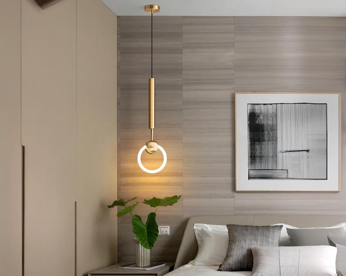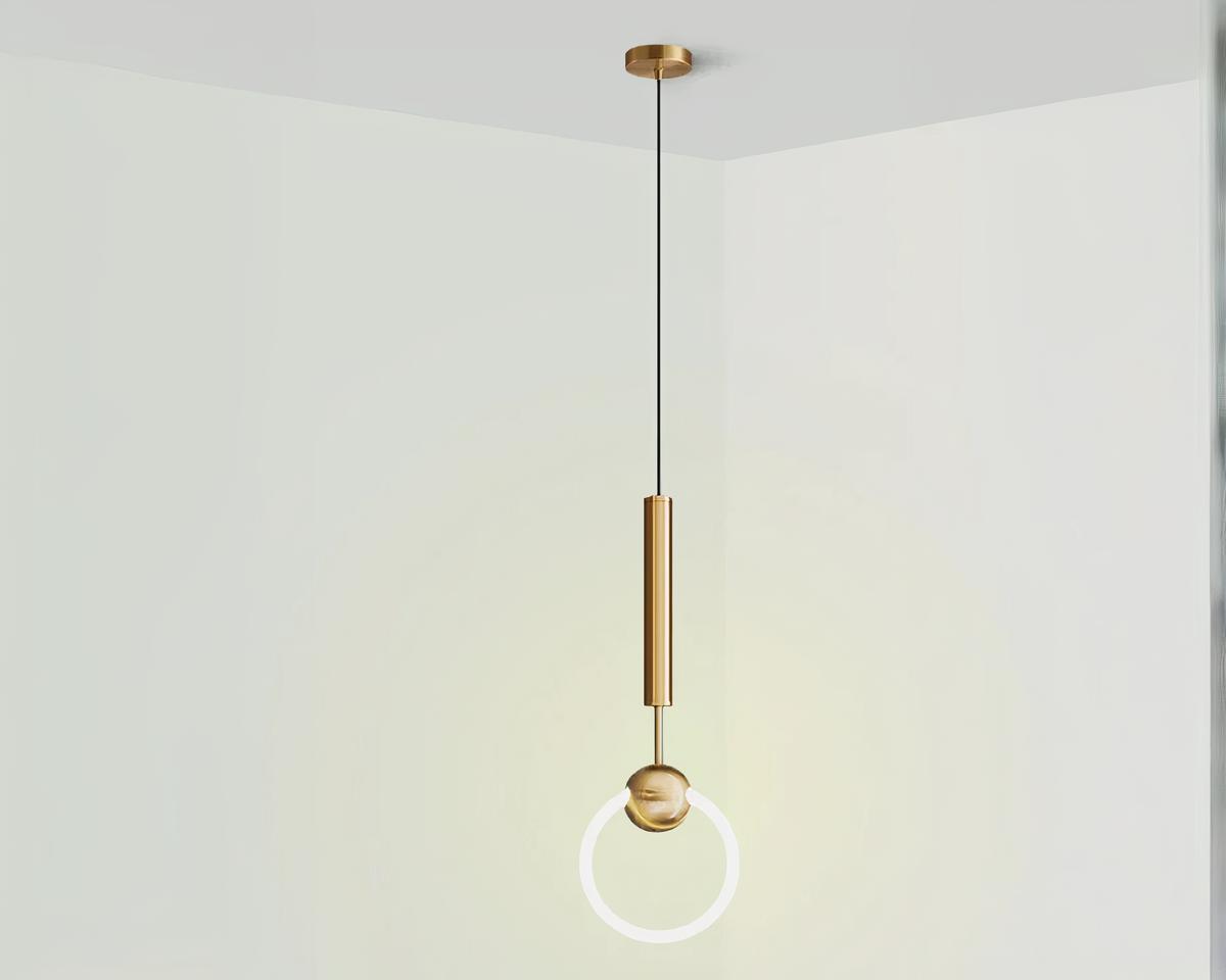 Suspension moderne LED avec anneau lumineux doré