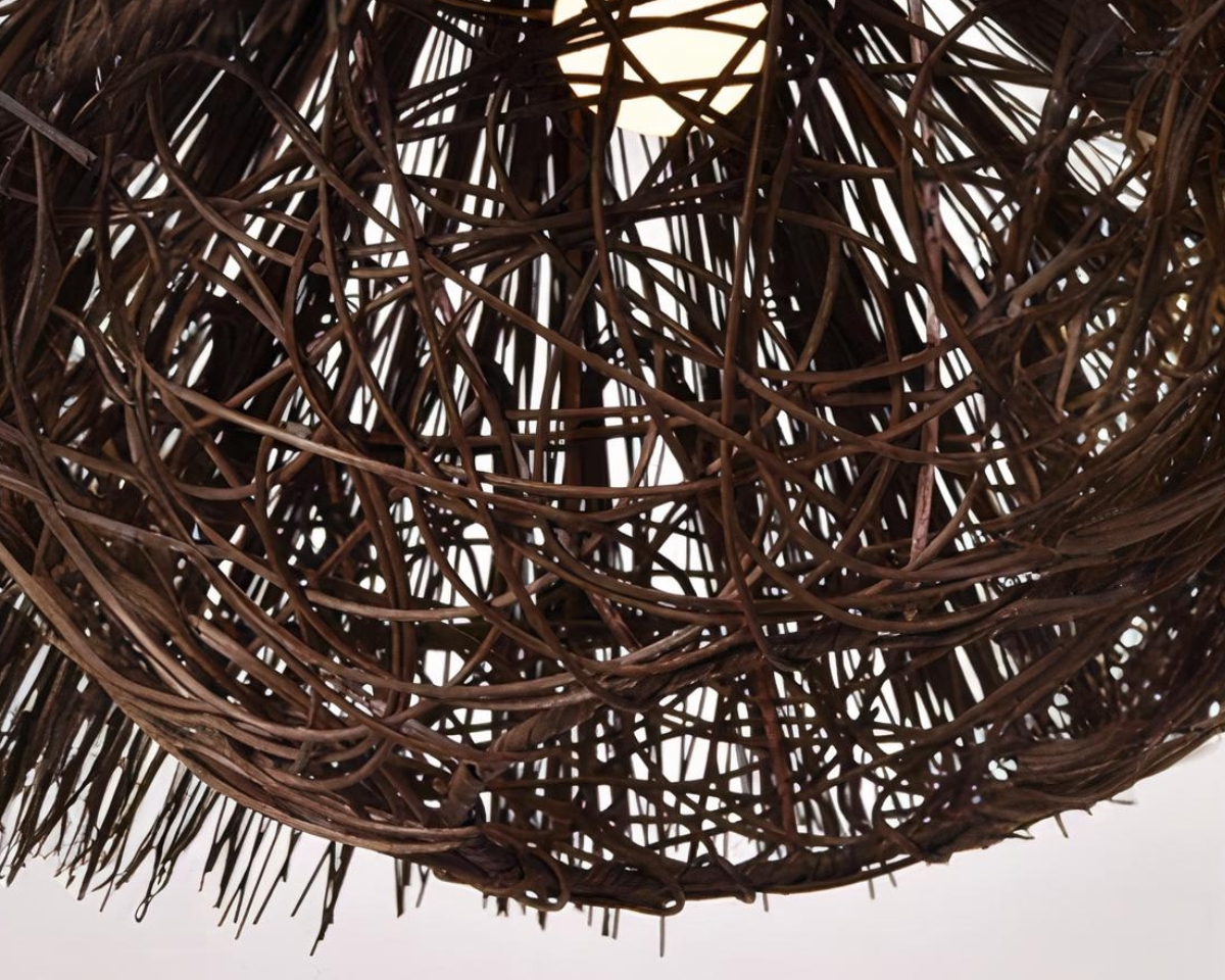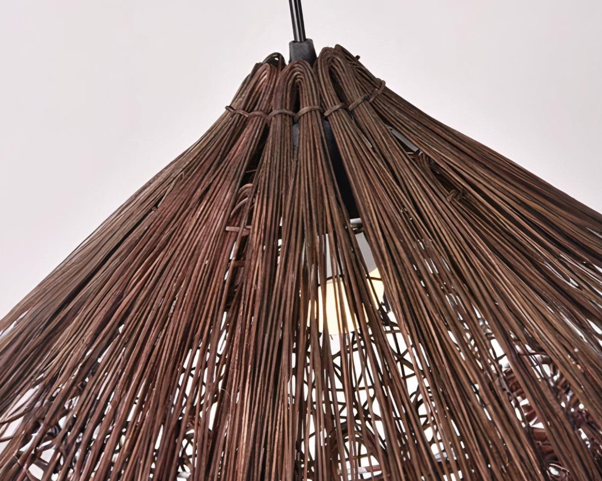 Cette suspension est fabriquée à partir de matériaux de qualité, alliant paille et rotin pour une structure à la fois légère et durable. Ce luminaire offre une solidité remarquable tout en conservant une esthétique délicate. Le rotin marron foncé confère une élégance intemporelle, faisant de cette suspension un élément central dans toute pièce.