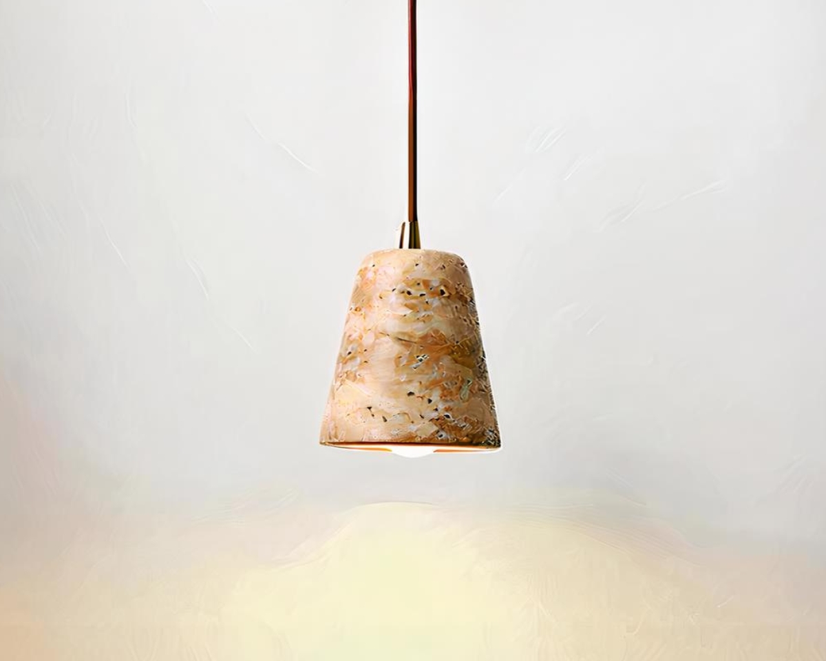 Cette suspension moderne utilise l'effet marbré pour ajouter un charme visuel à votre espace de vie. L'alliance de la terre cuite et de la pierre offre un aspect à la fois robuste et esthétiquement agréable, parfait pour les décors cherchant à combiner naturel et modernité.