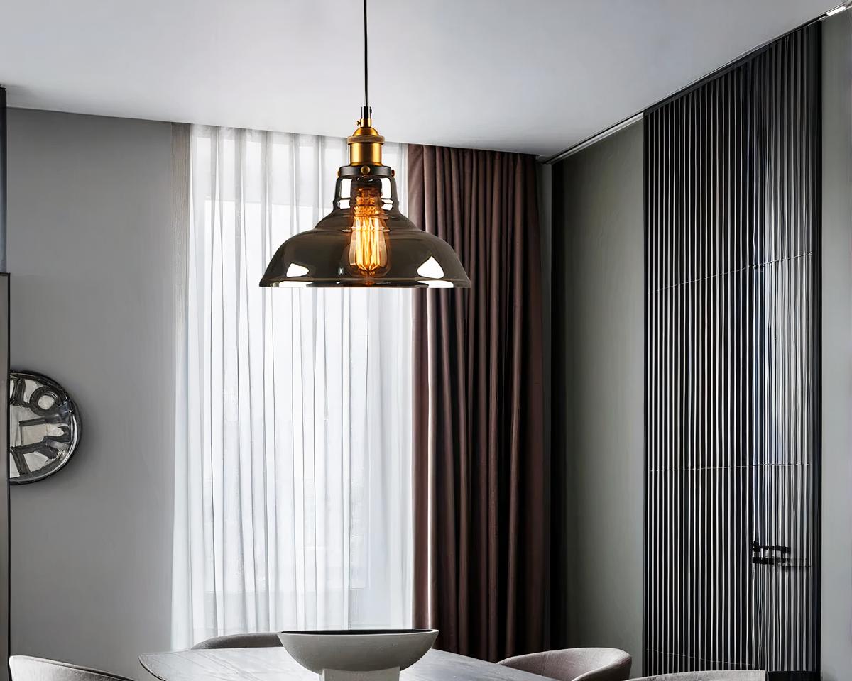 Avec son abat-jour en verre fumé gris et ses détails en métal doré, cette suspension incarne un look vintage avec une touche de modernité. Son design élégant est idéal pour les intérieurs qui cherchent à combiner le style ancien avec des éléments contemporains, offrant une pièce maîtresse qui attire l'œil.